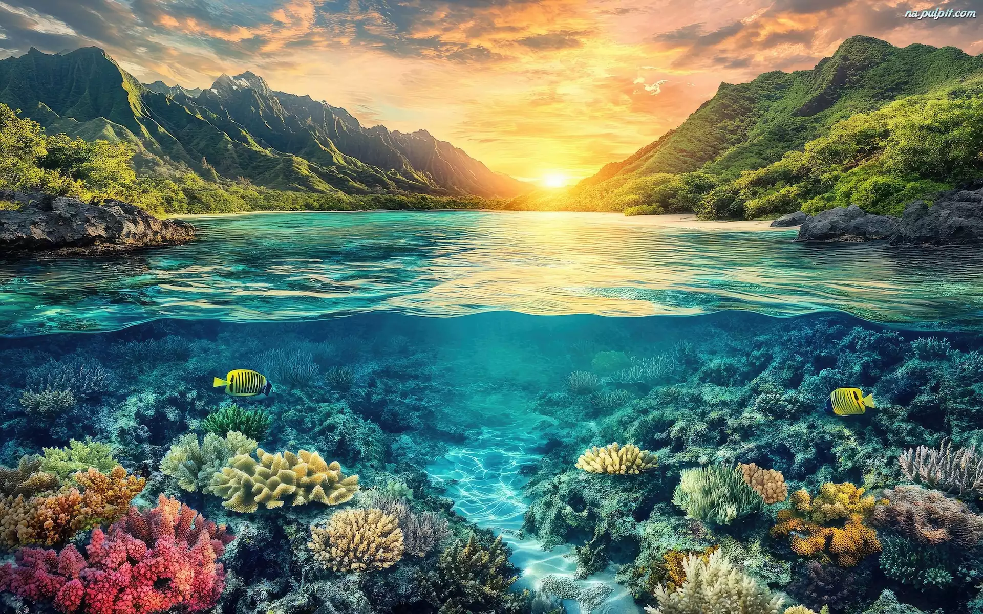 Góry, Wschód słońca, Morze, Rafa koralowa Na Pulpit