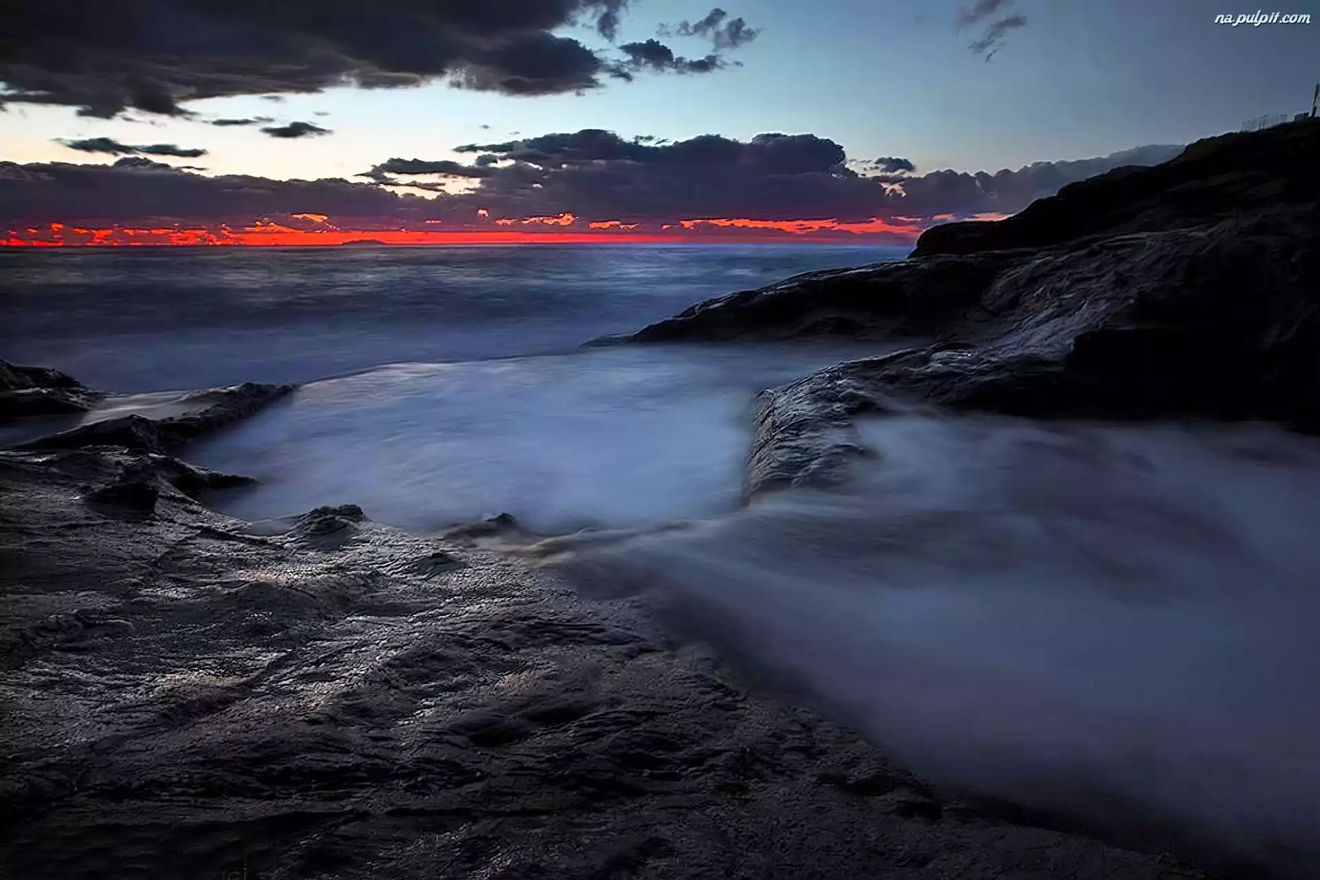 Morze, Zachód, Słońca, Skały, Krajobraz, Chmury Na Pulpit