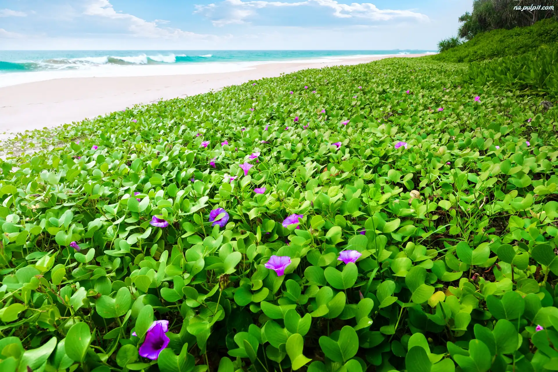 Kwiaty, Morze, Plaża