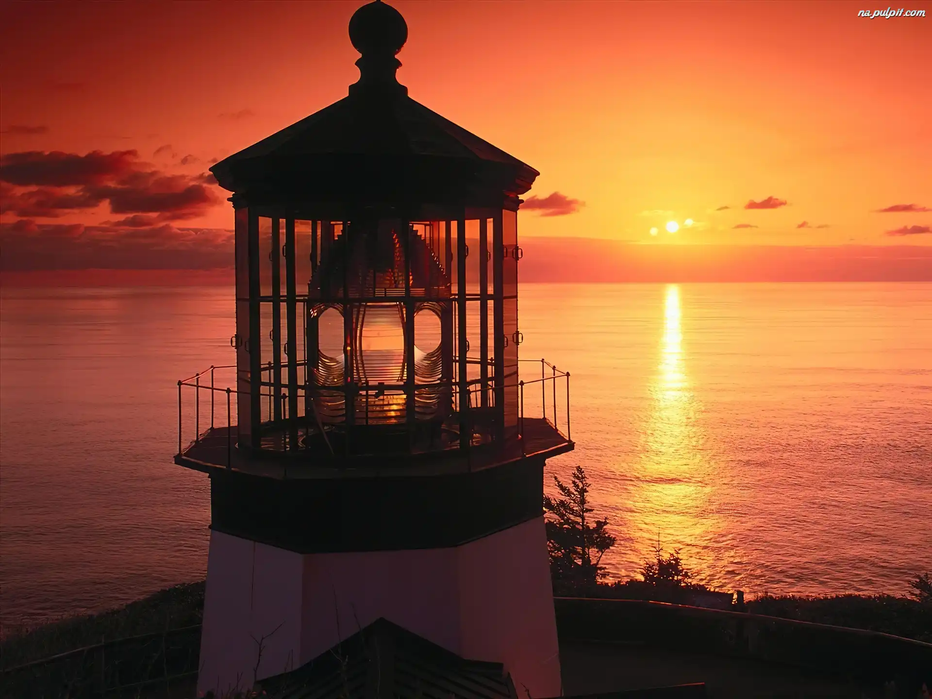 Morze, Zachód, Morska, Latarnia, Słońca Na Pulpit