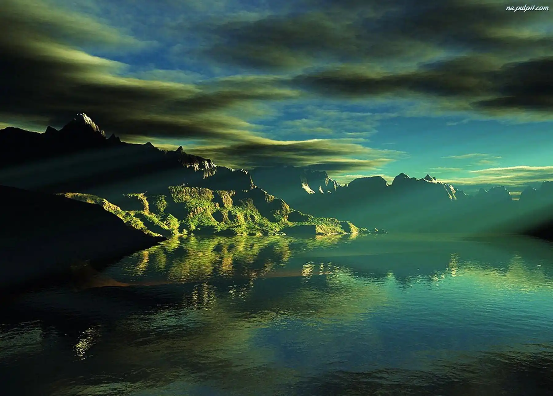 Morze, Słońcem, Oświetlone, Góry Na Pulpit
