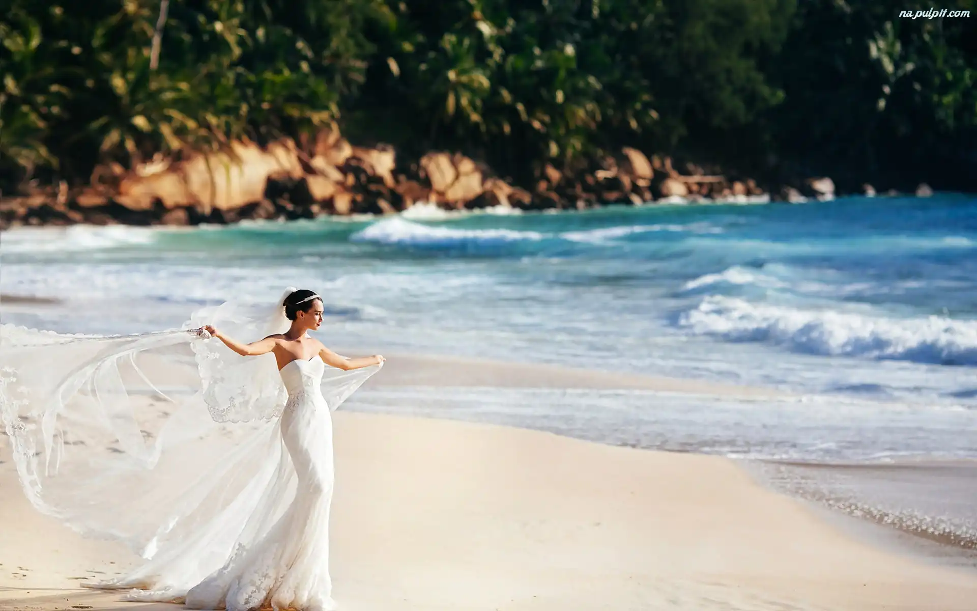 Morze, Młoda, Panna, Plaża Na Pulpit