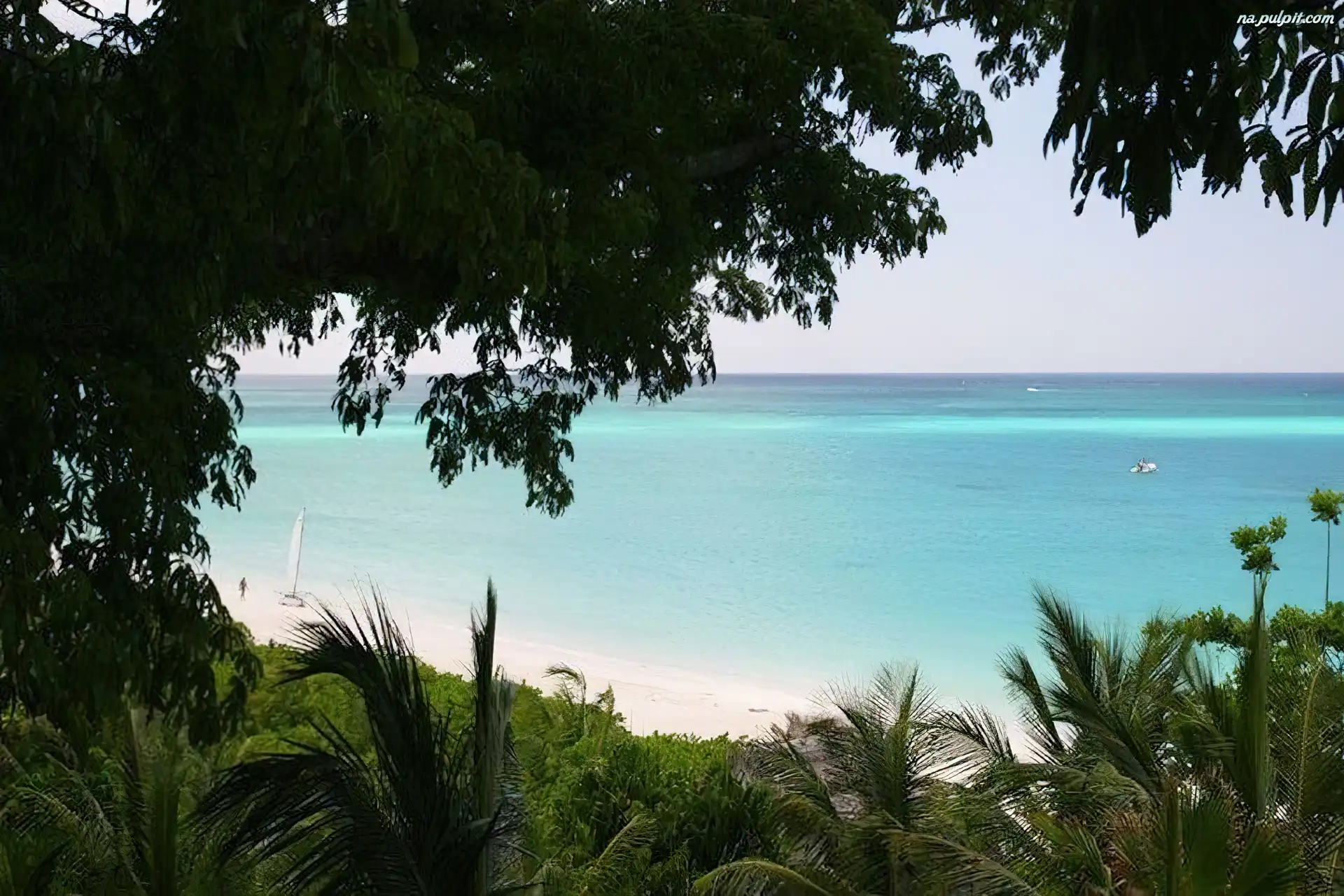 Plaża, Morze, Drzewa Na Pulpit