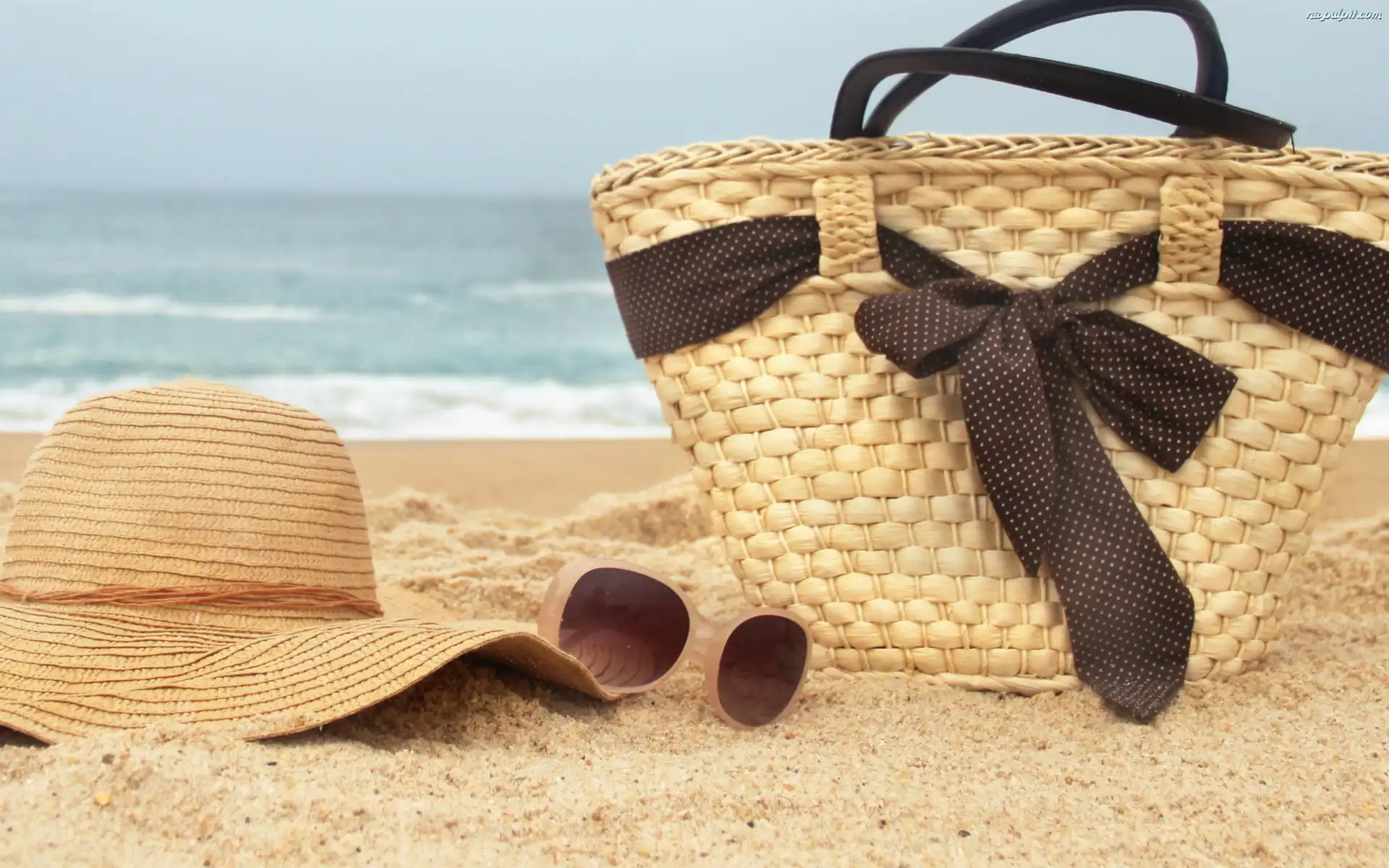 Morze, Okulary, Lato, Koszyk, Plaża, Kapelusz Na Pulpit