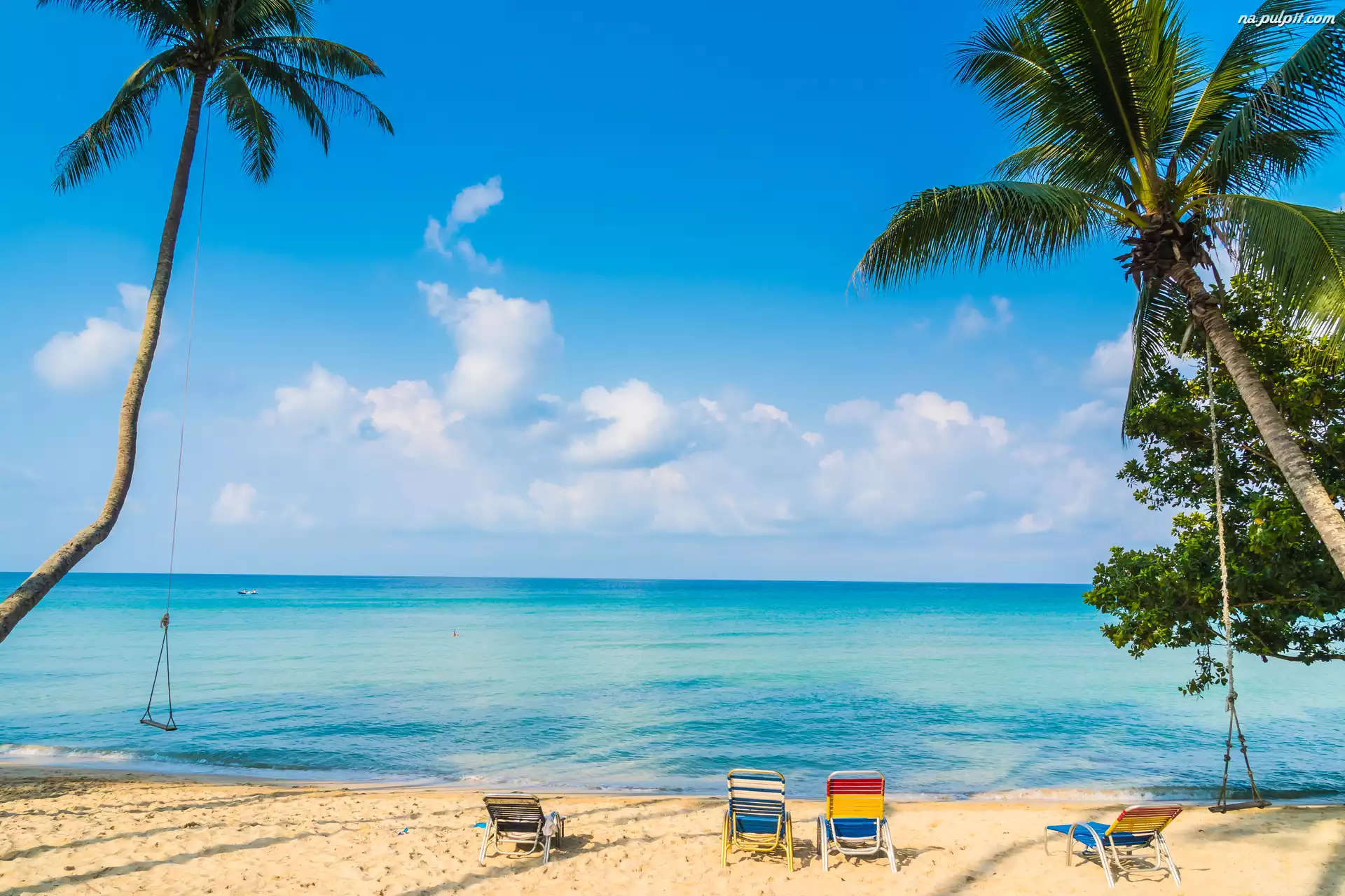 Hustawki, Morze, Plaża, Leżaki, Palmy Na Pulpit