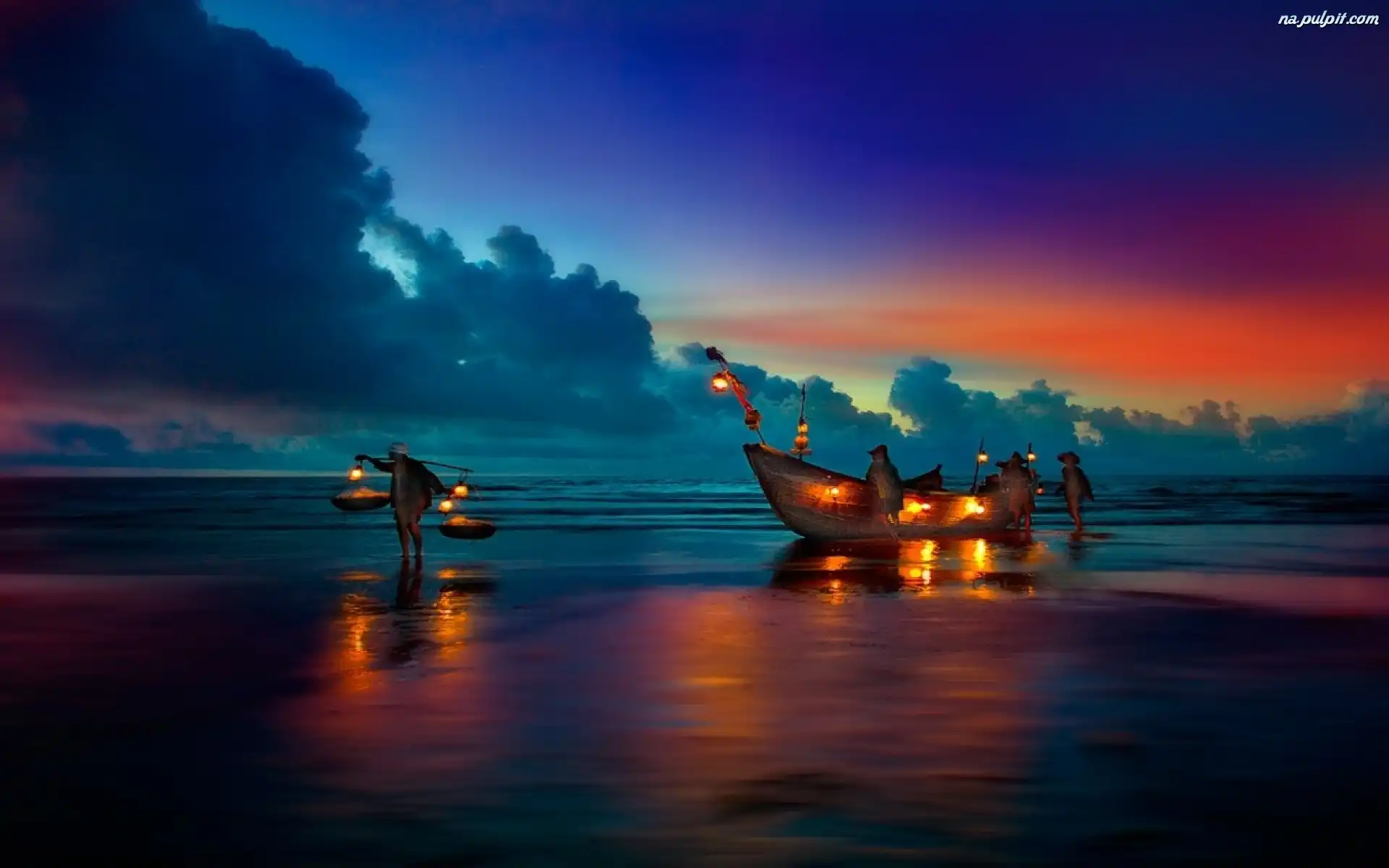 Rybacy, Morze, Plaża Na Pulpit