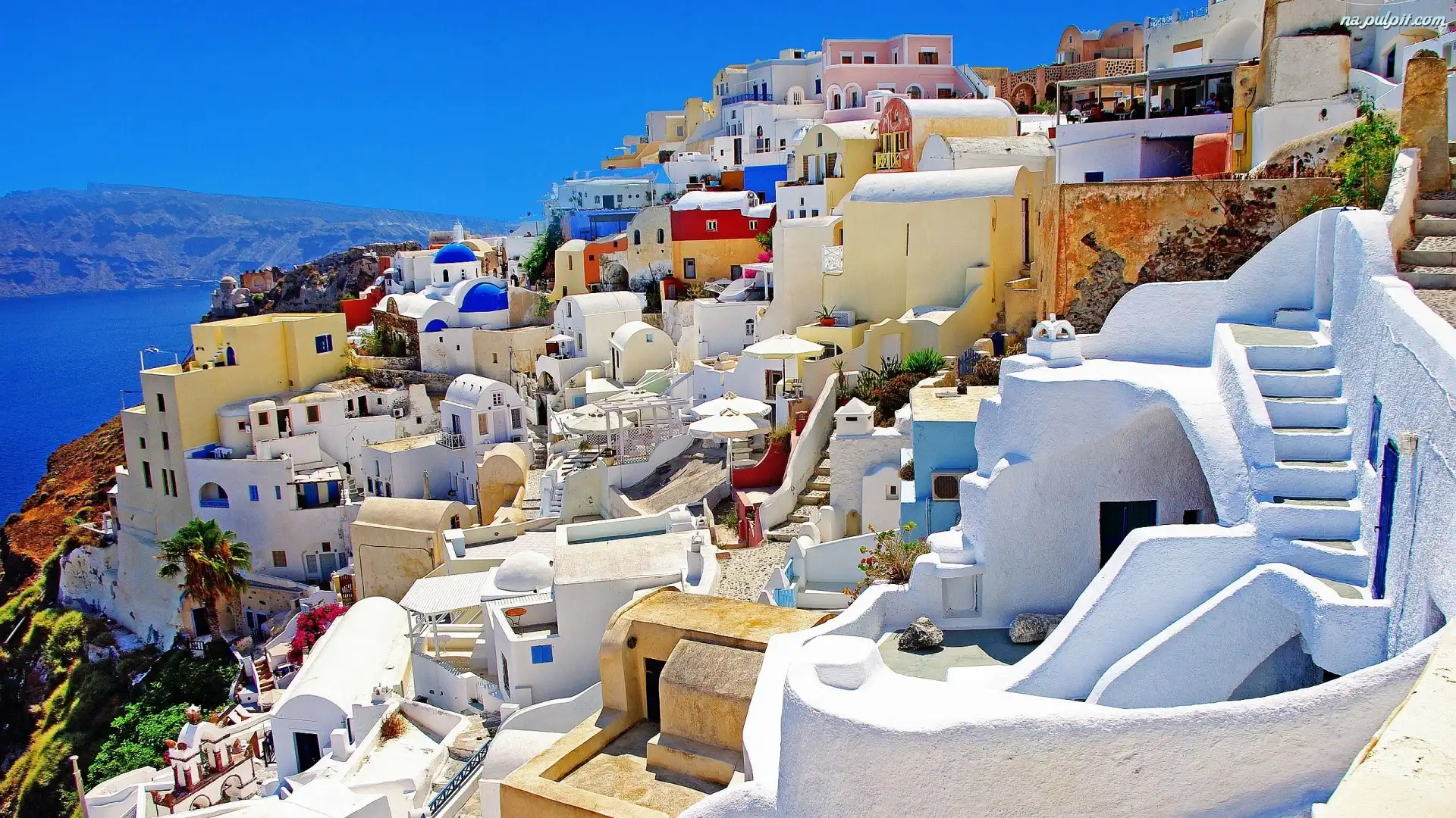 Morze, Miasto, Santorini, Budynki Na Pulpit