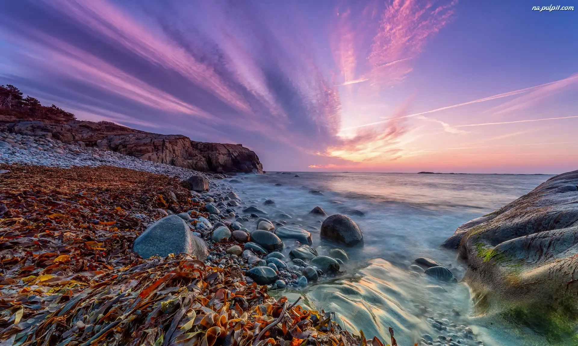 Liście, Morze, Skały, Chmury, Kamienie Na Pulpit