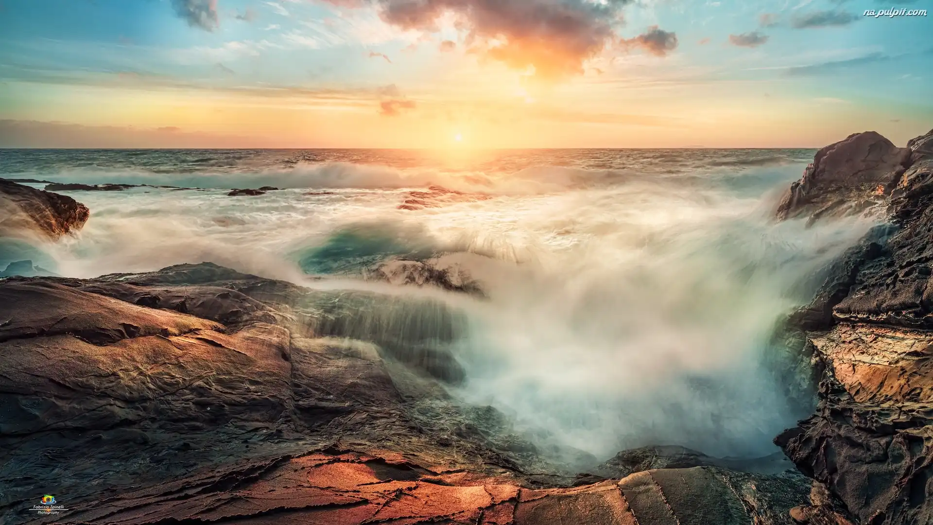 Wzburzone, Wschód słońca, Morze, Fale, Skały Na Pulpit
