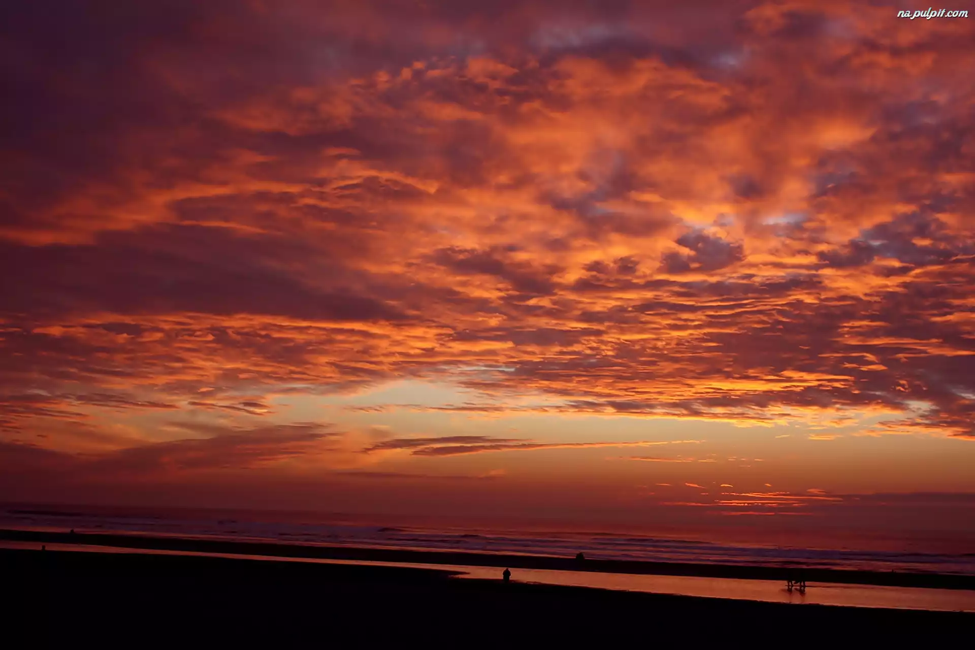 Morze, Niebo, Zachód słońca, Chmury Na Pulpit