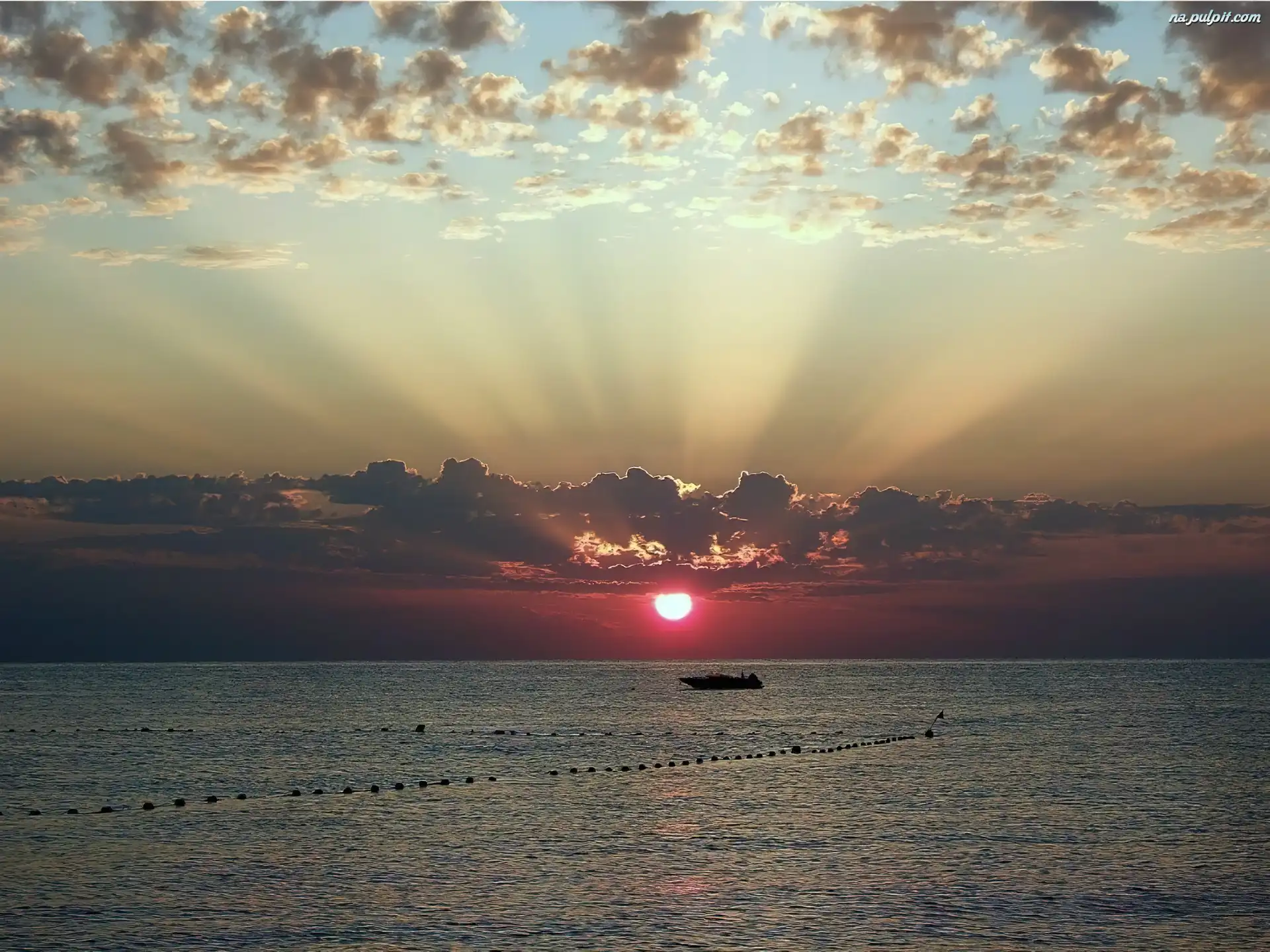 Łódz, Słońca, Zachód, Morze, Chmury Na Pulpit