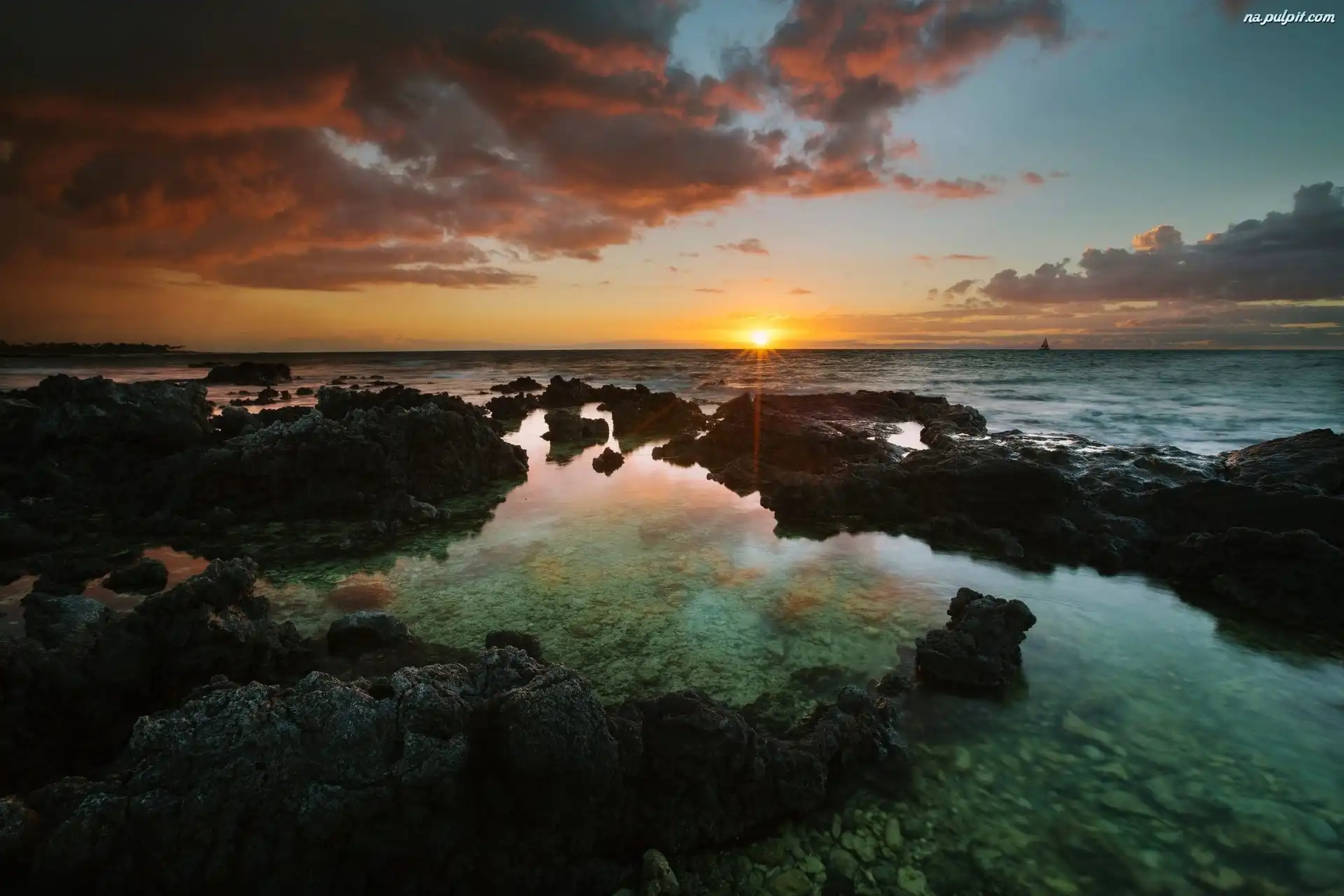 Morze, Zachód Słońca, Skały