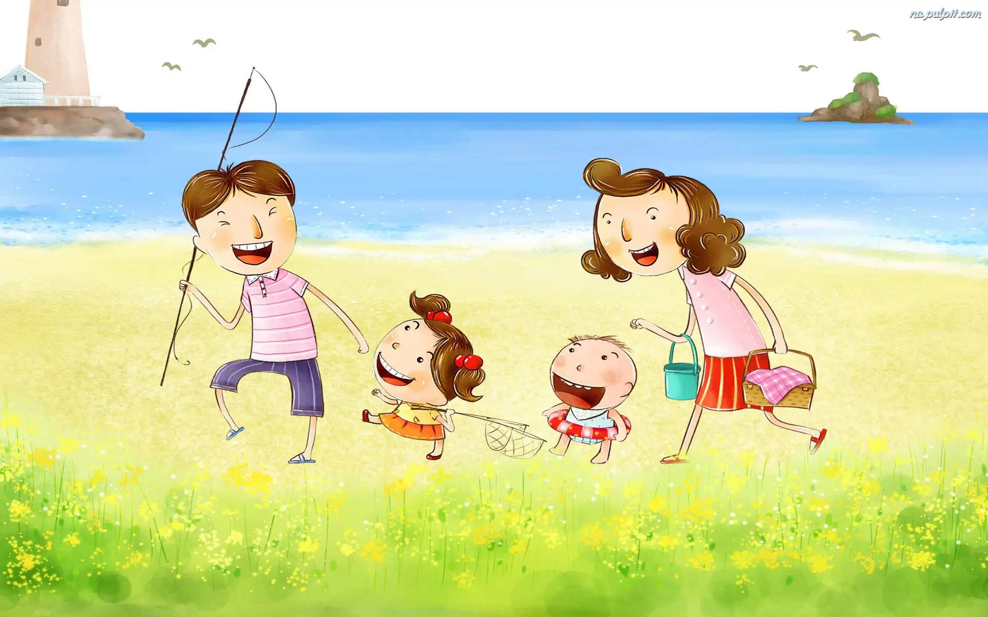 Morze, Rodzinka, Szczęśliwa, Plaża Na Pulpit