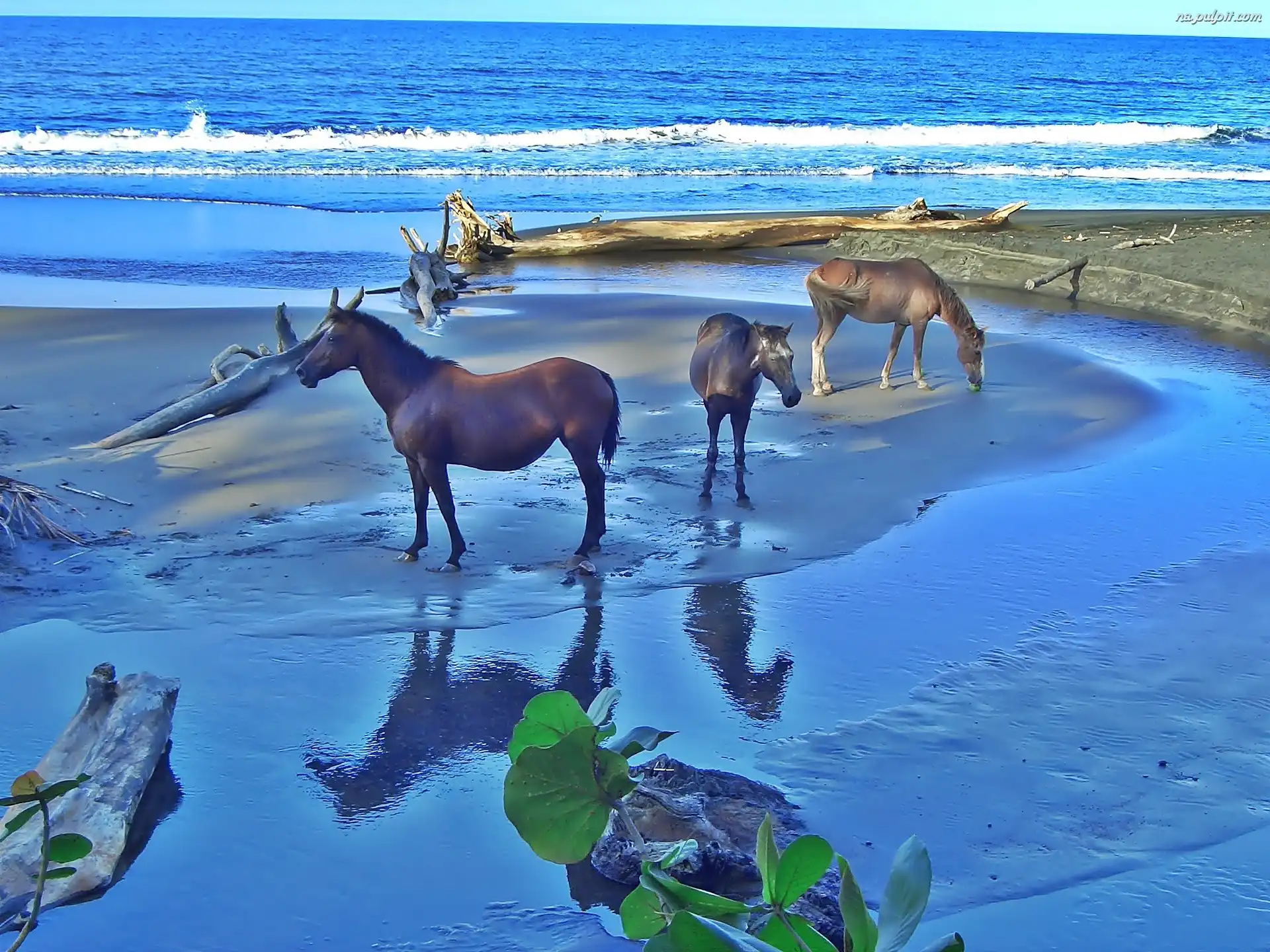 Morze, Konie, Trzy, Plaża Na Pulpit
