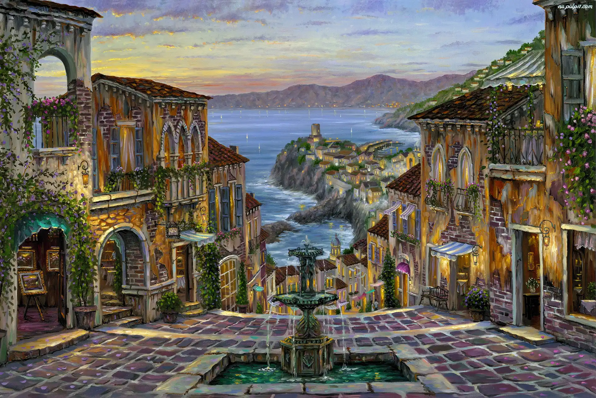 Morze, Domy, Ulica, Fontanna Na Pulpit