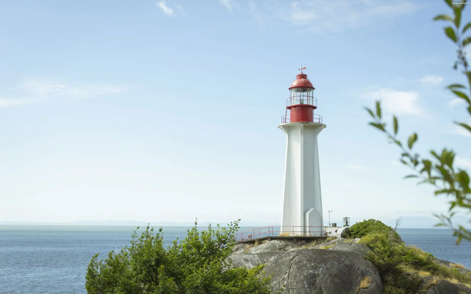 Kanada, Sheringham Point Lighthouse, Vancouver, Roślinność, Skała, Latarnia morska, Morze