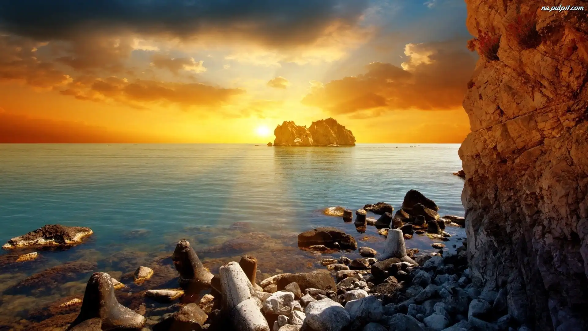 Morze, Zachód, Słońca, Kamienie, Wybrzeże, Klify Na Pulpit