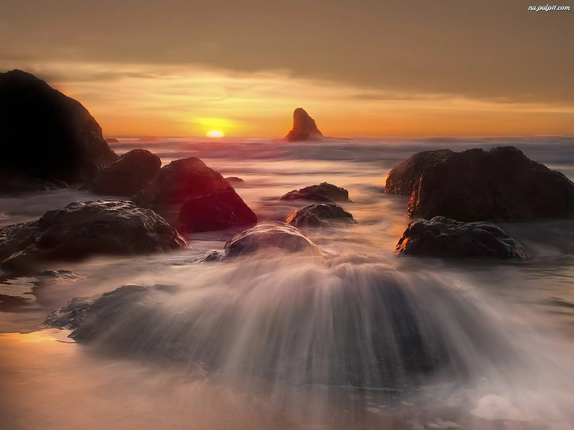 Góra, Skały Skały, Wybrzeże, Niebezpieczne Kłus, Fale, Konie, Plaża Zachód Słońca Mały, Puszczy, Wielkiej, Dolina, Beskid Morze, Delfiny, Zachody Śłońca Skalny, Oświetlony, Łuk Ptak, Zachód Słońca Zatoka, Morze, Błękit Kwiatki, Morze, Łódka Opadające gałęzie, Zachód Słońca Zachód Słońca, Drzewo Skała Skały