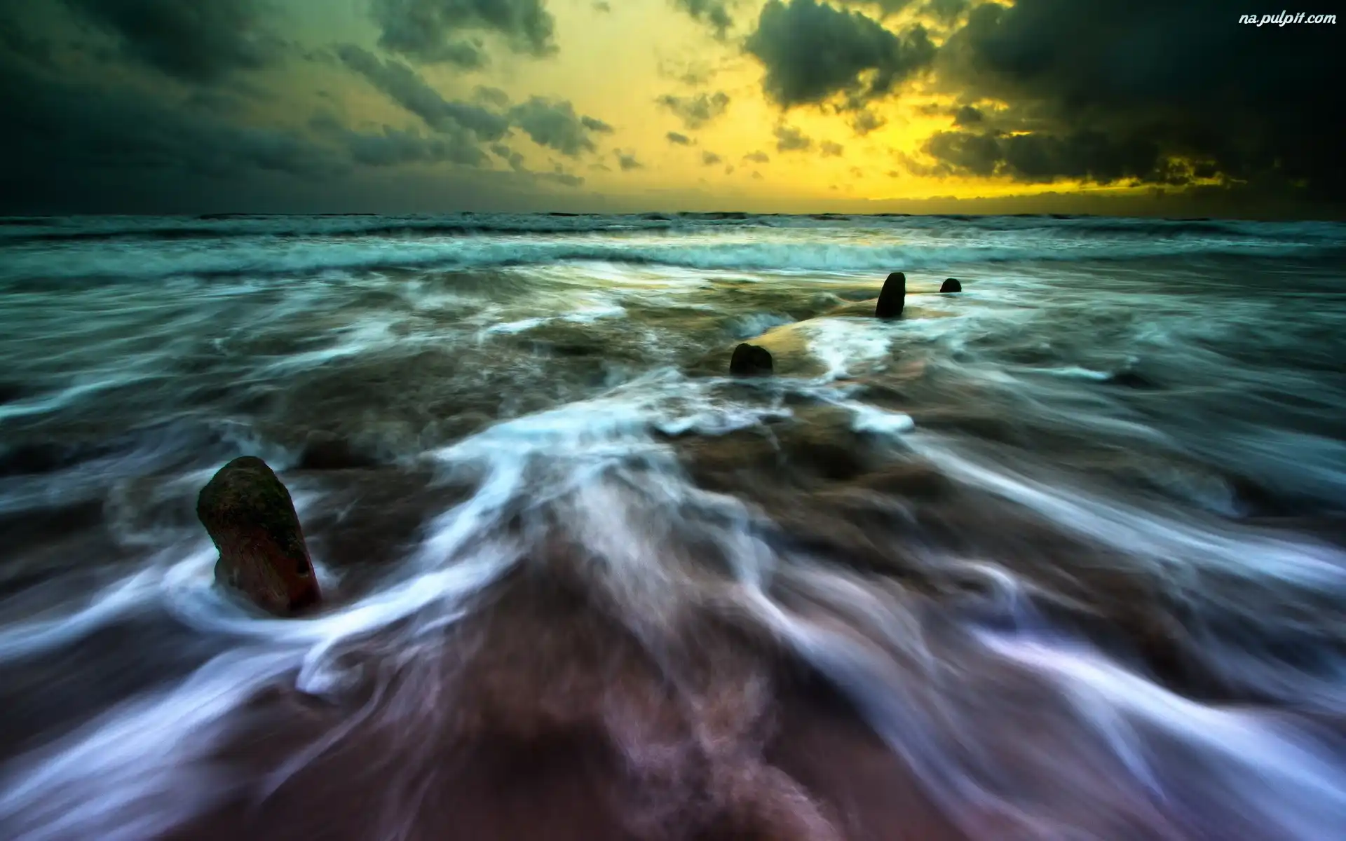 Morze, Słońca, Zachód, Chmury Na Pulpit