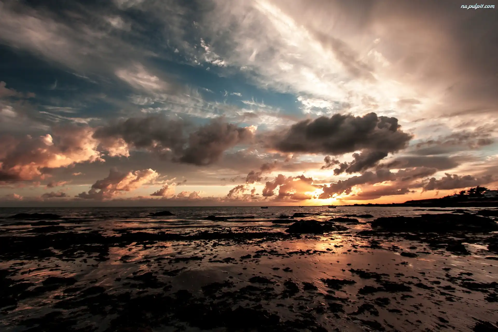 Morze, Słońca, Zachód, Chmury Na Pulpit