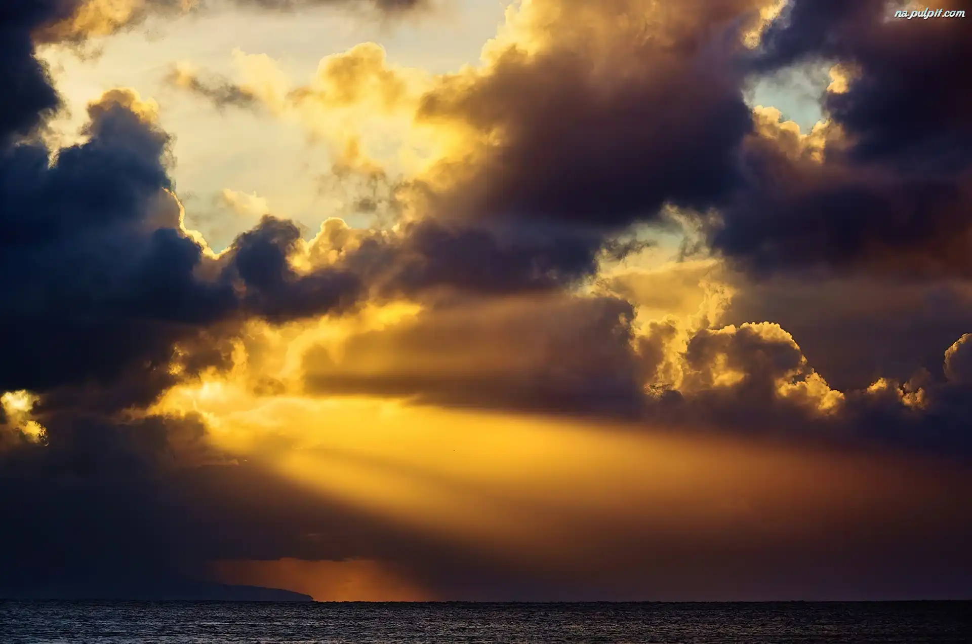 Morze, Słońca, Zachód, Chmury Na Pulpit
