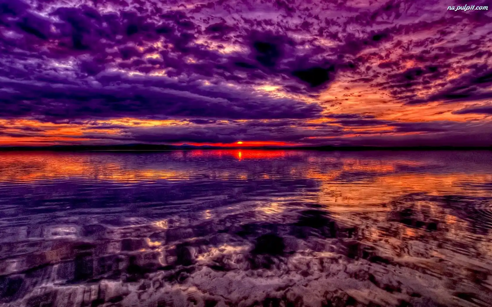 Morze, Słońca, Zachód, Chmury Na Pulpit