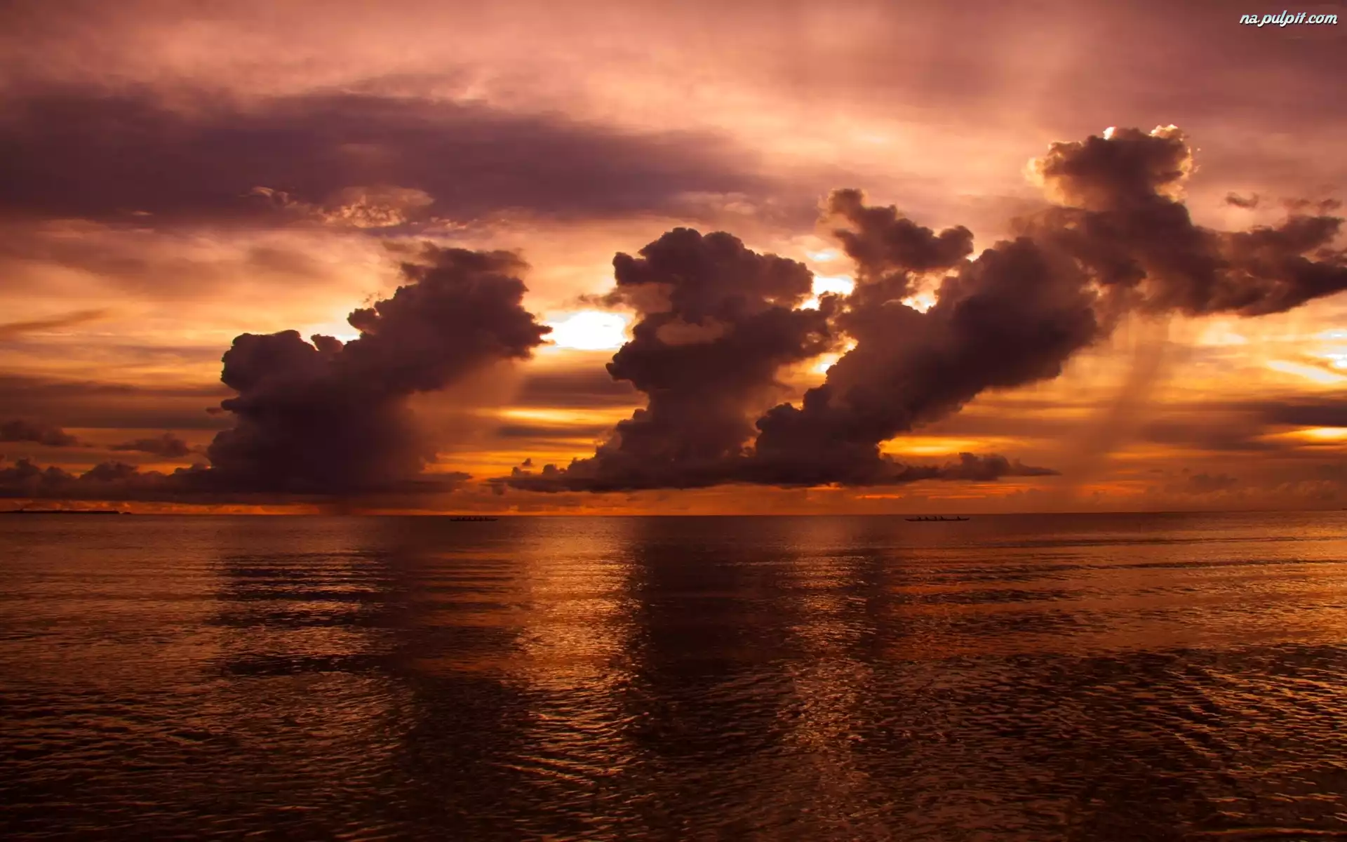 Morze, Słońca, Zachód, Chmury Na Pulpit