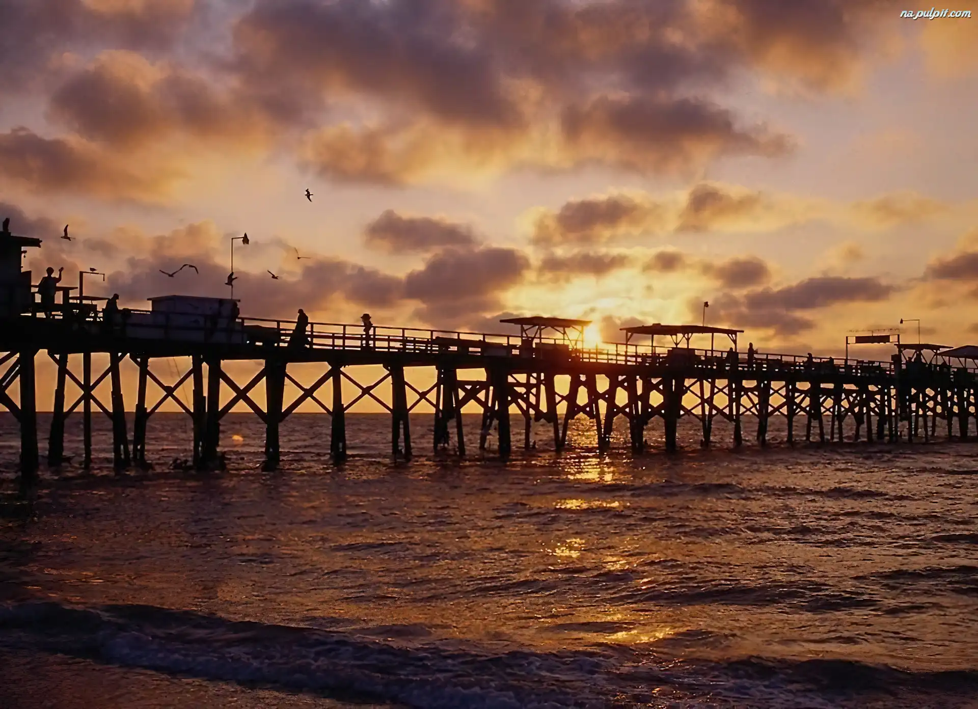 Morze, Słońca, Zachód, Molo Na Pulpit