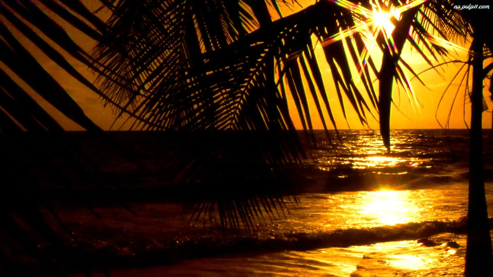 Morze, Słońca, Zachód, Palmy Na Pulpit