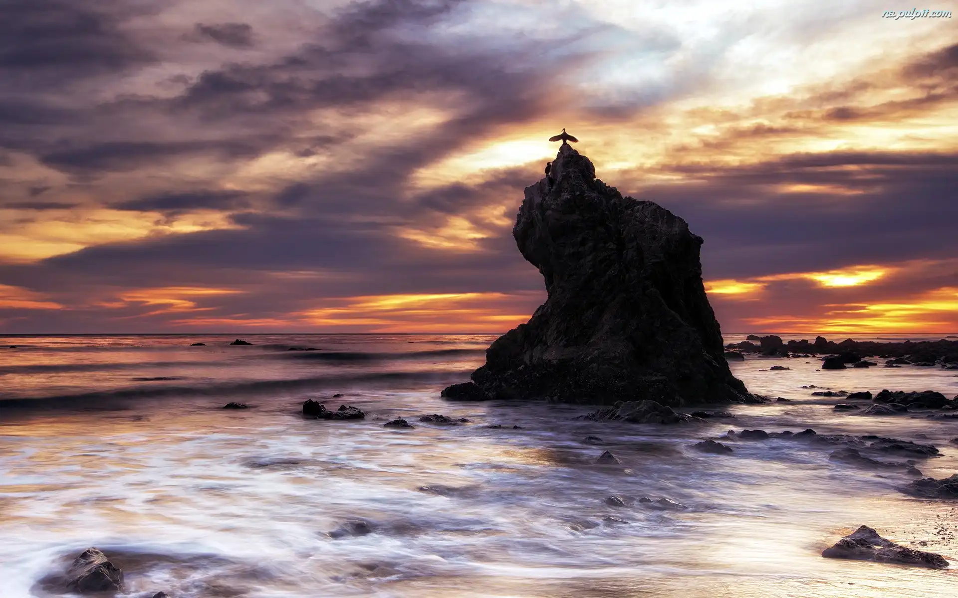 Morze, Słońca, Zachód, Skała Na Pulpit