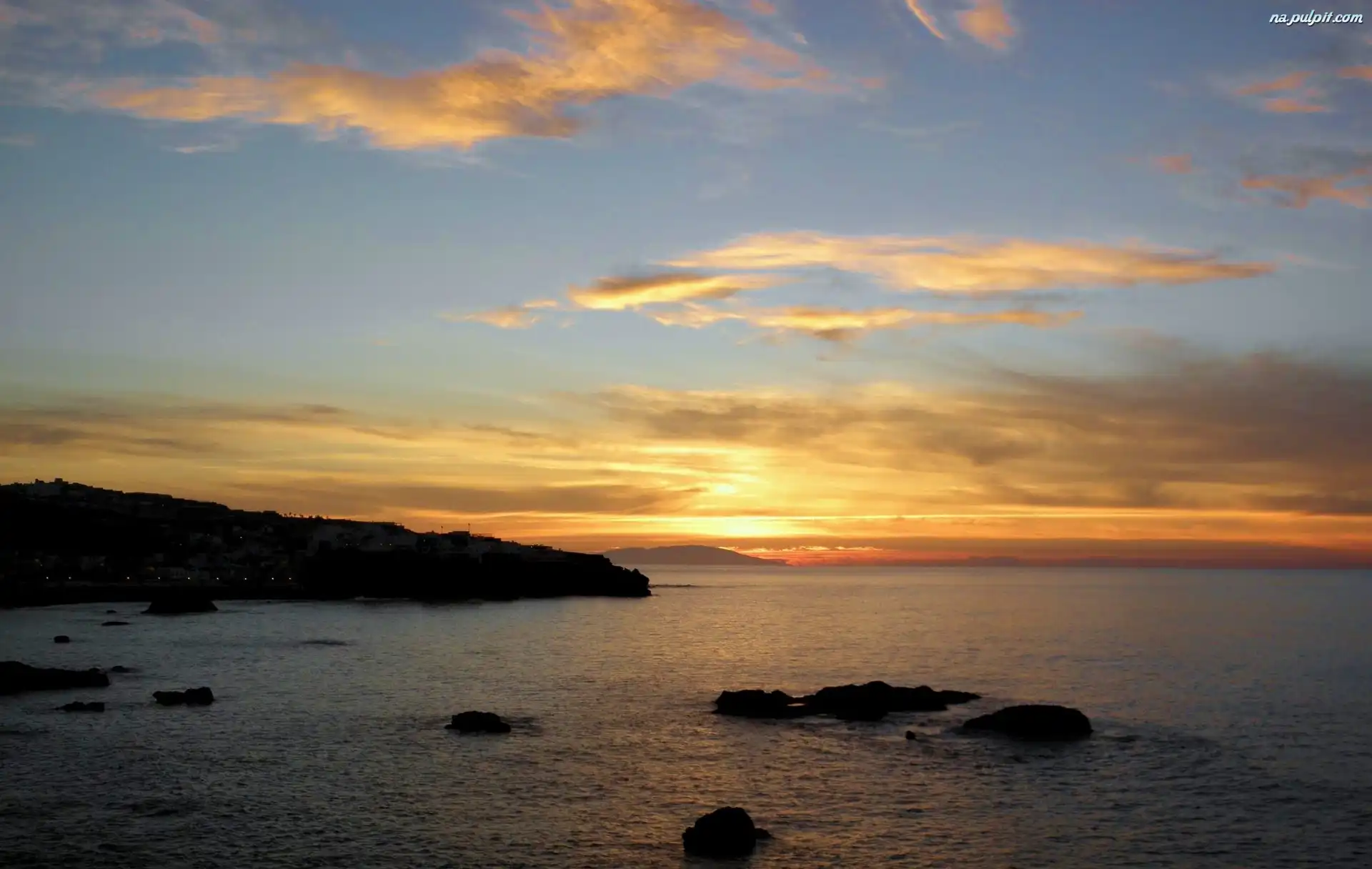 Morze, Słońca, Zachód, Skały Na Pulpit
