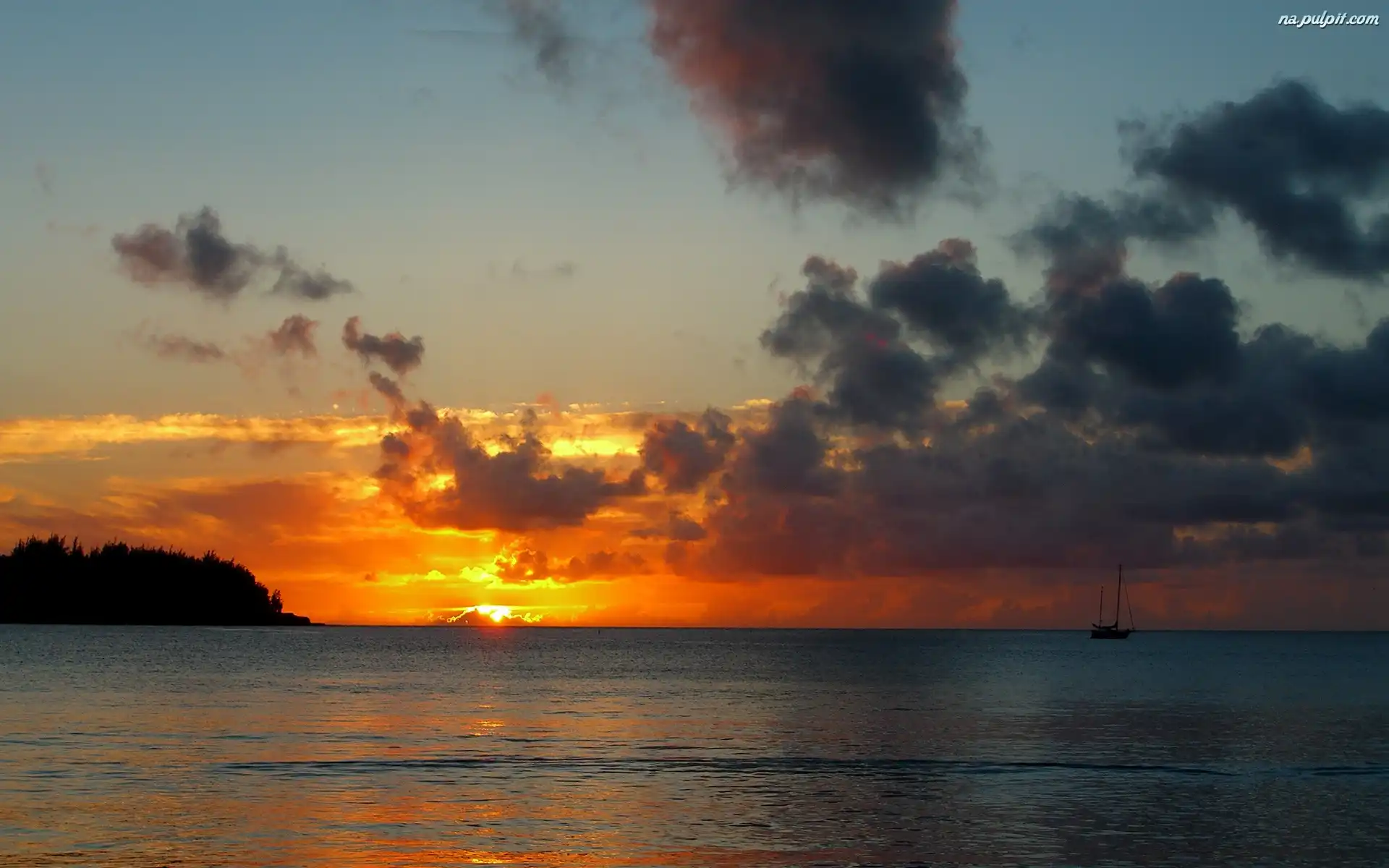 Morze, Słońca, Zachód, Statek Na Pulpit