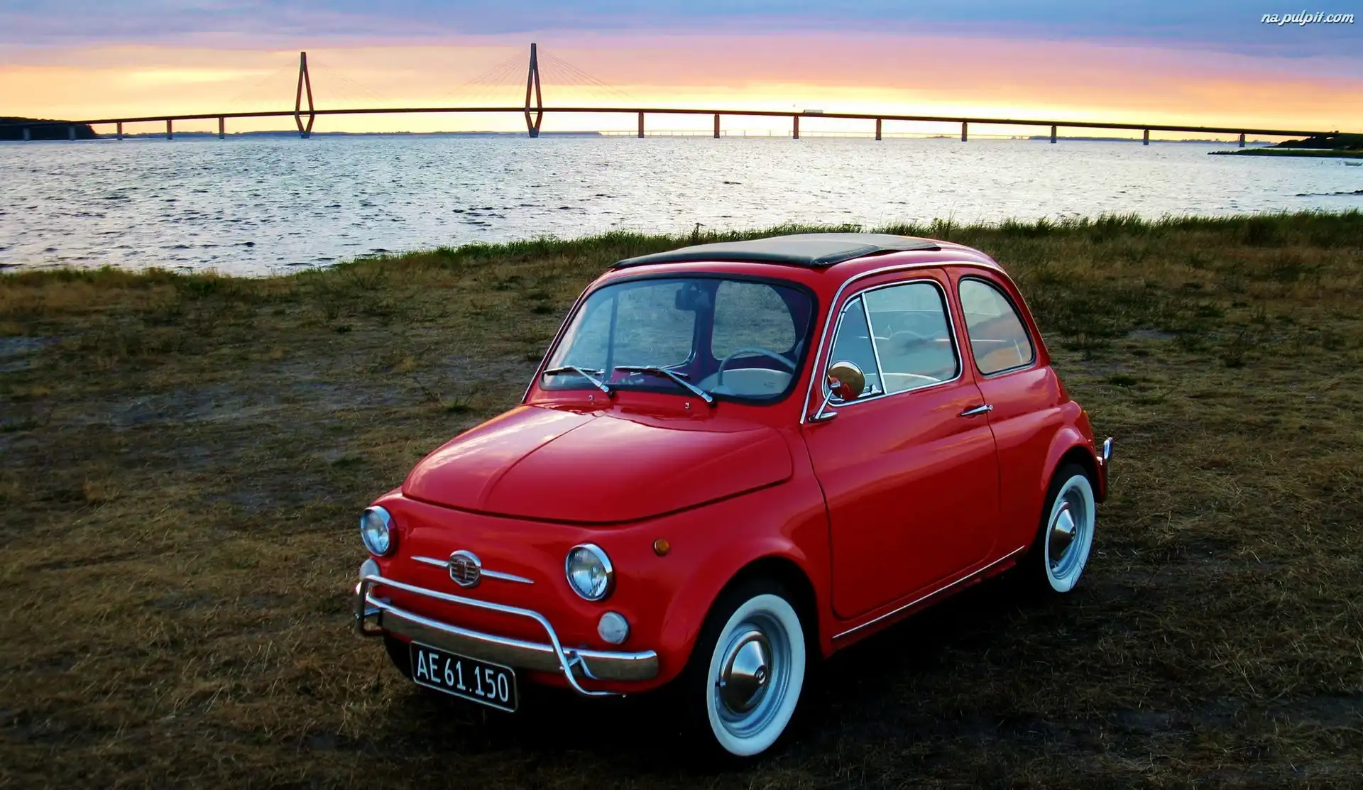 Most, Fiat 500, Czerwony, Rzeka Na Pulpit