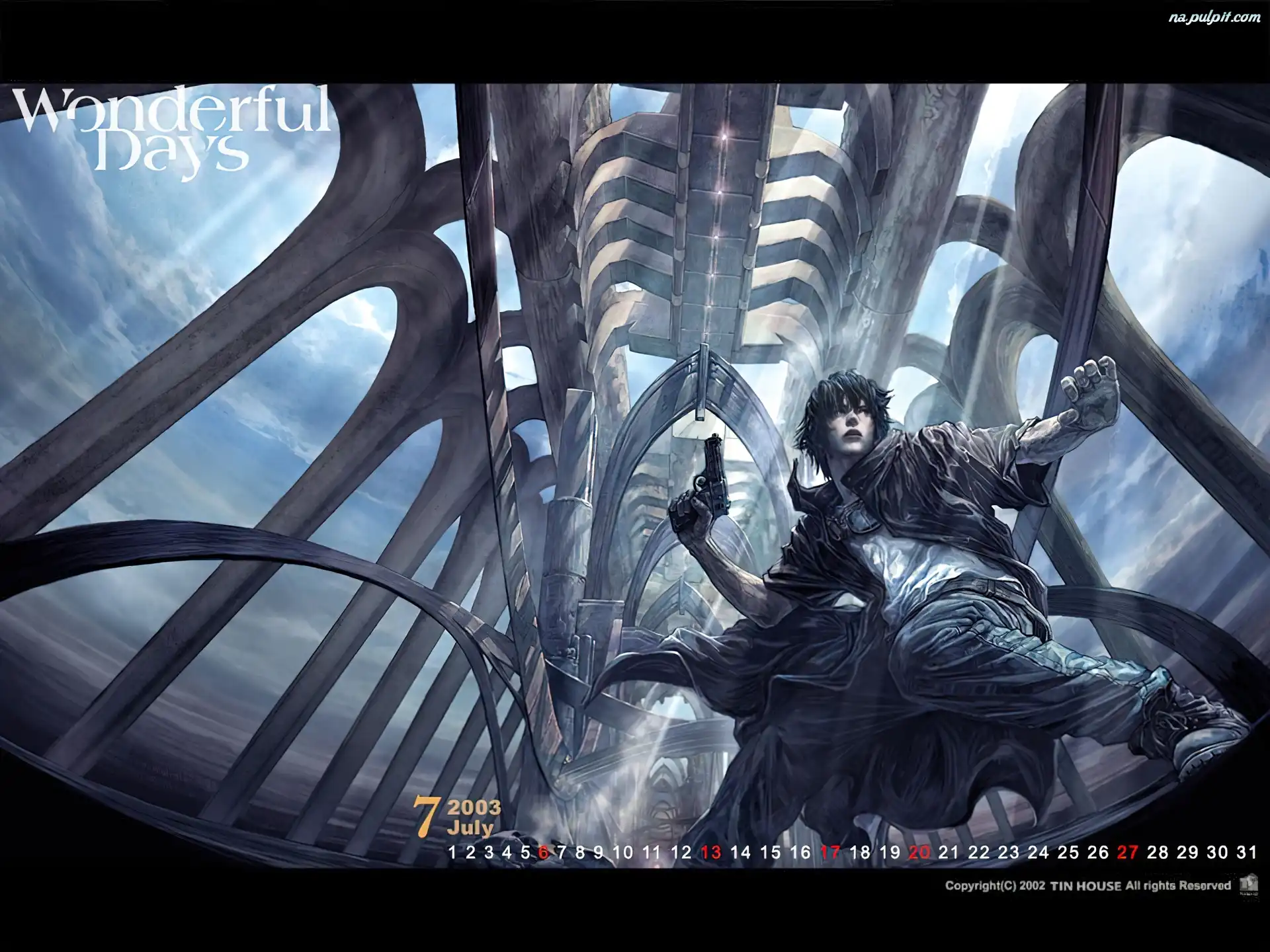 pistolet, witraż, Manga Anime, Wonderful Days, postacie Wonderful Days, Manga Anime, most, tunel most, Wonderful Days, chłopiec niebo, Wonderful Days, wiatraki Wonderful Days, Manga Anime, niebo, samolot znaki, Wonderful Days, Manga, pustynia, Anime chmury, Wonderful Days budowla, Wonderful Days, napis
