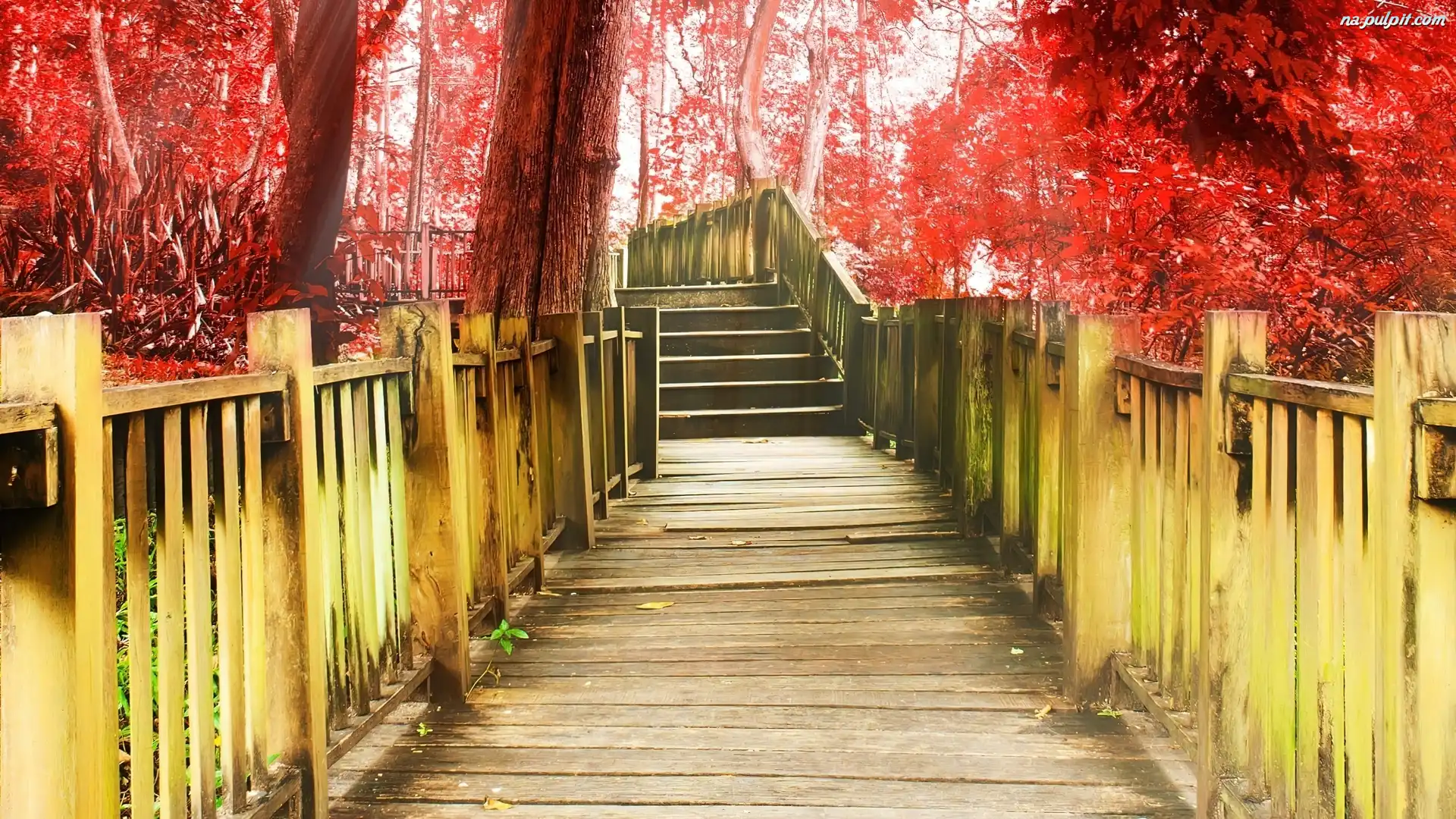 Drzewa, Most, Czerwone Na Pulpit