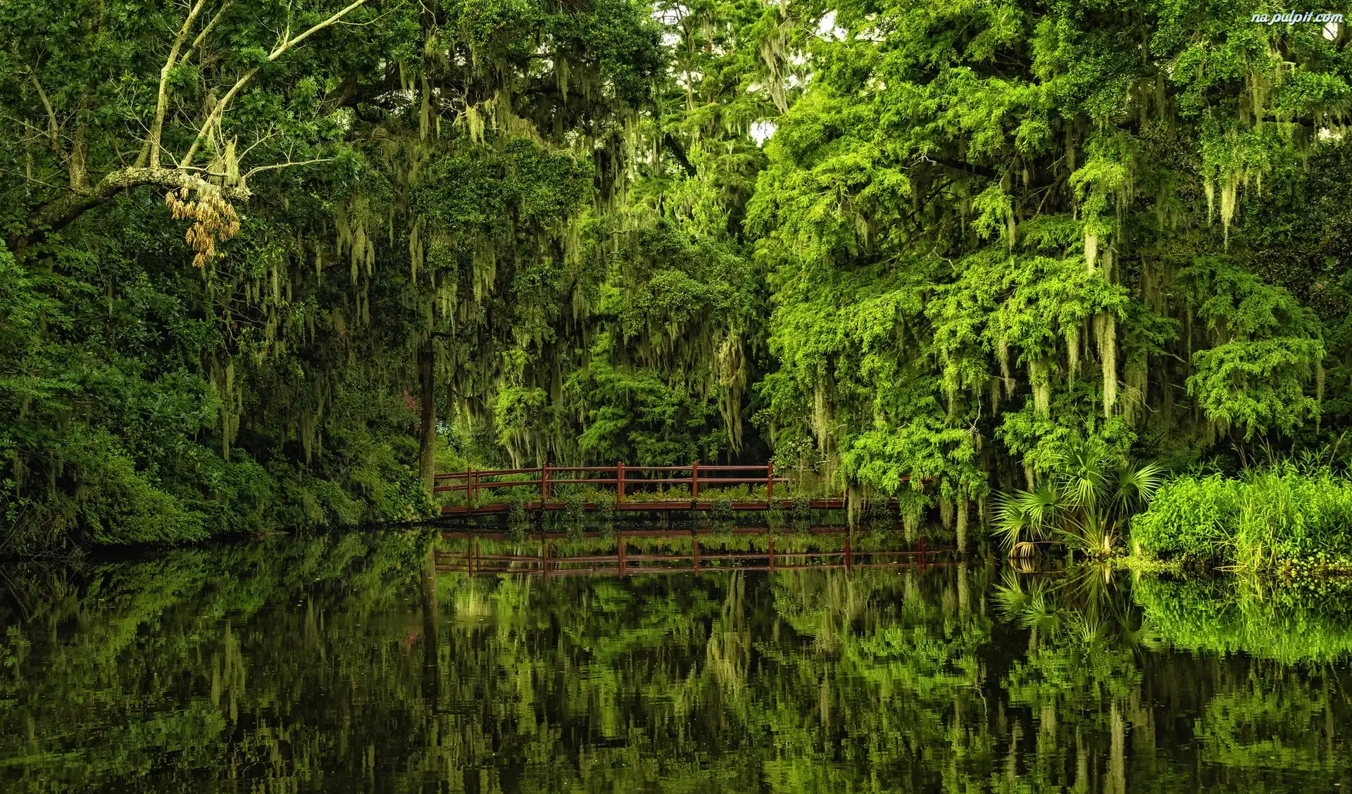 Drzewa, Most, Południowa Karolina, Ogród Botaniczny, Staw