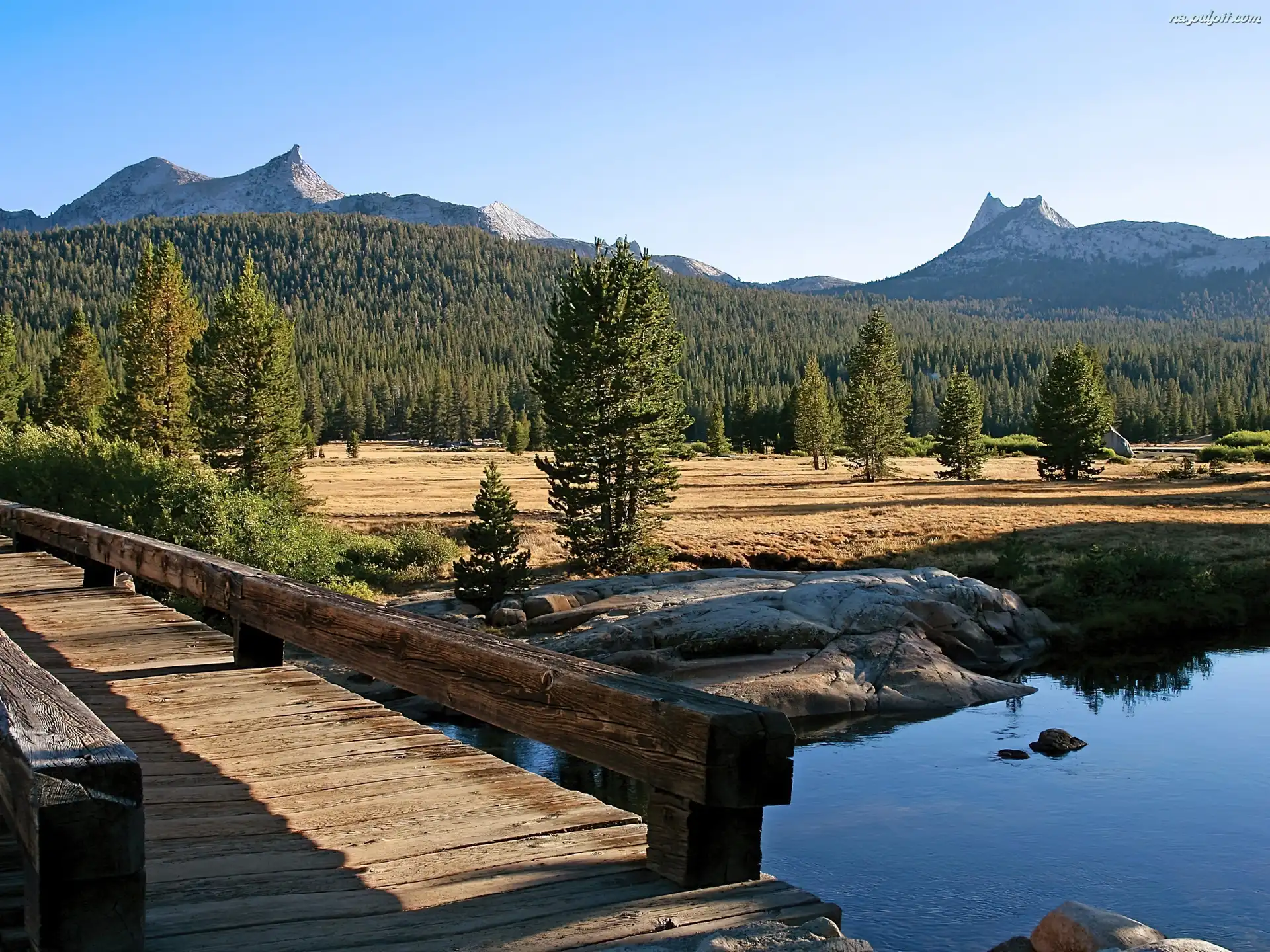 Most, Rzeka, Lasy, Góry, Drewniany Na Pulpit