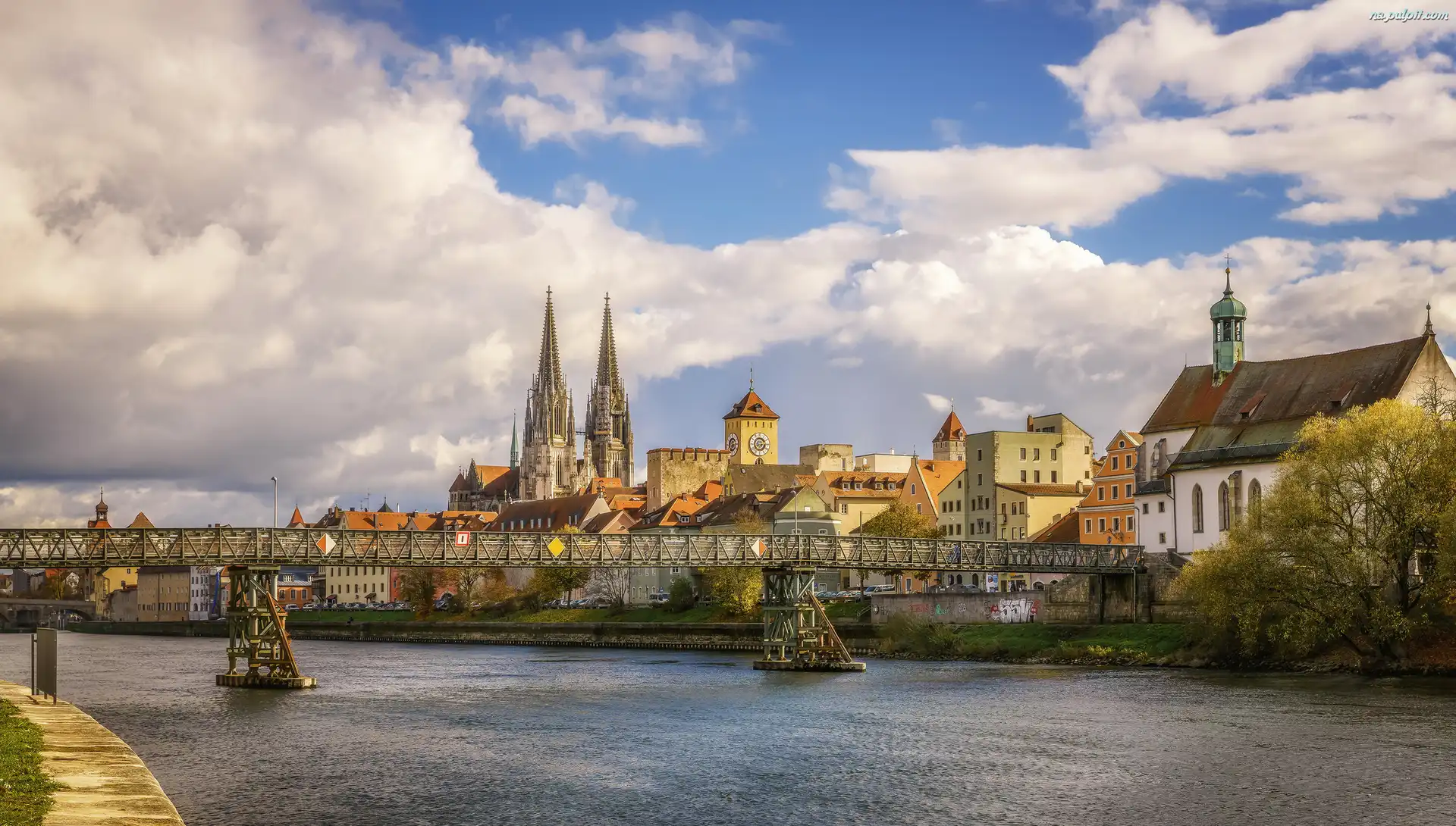 Katedra Św. Piotra, Bawaria, Regensburg, Most, Kościół, Miasto Ratyzbona, Niemcy, Rzeka Dunaj Na Pulpit |
