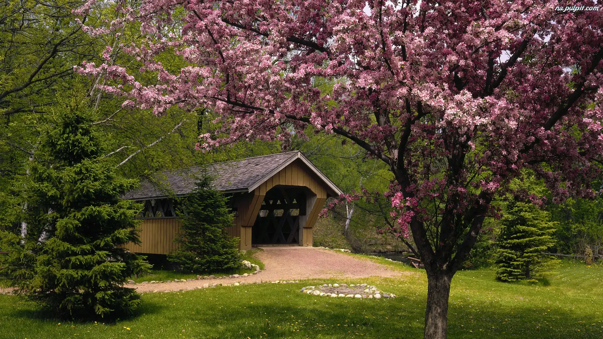Most, Drzewo, Kwitnące, Zadaszony Na Pulpit