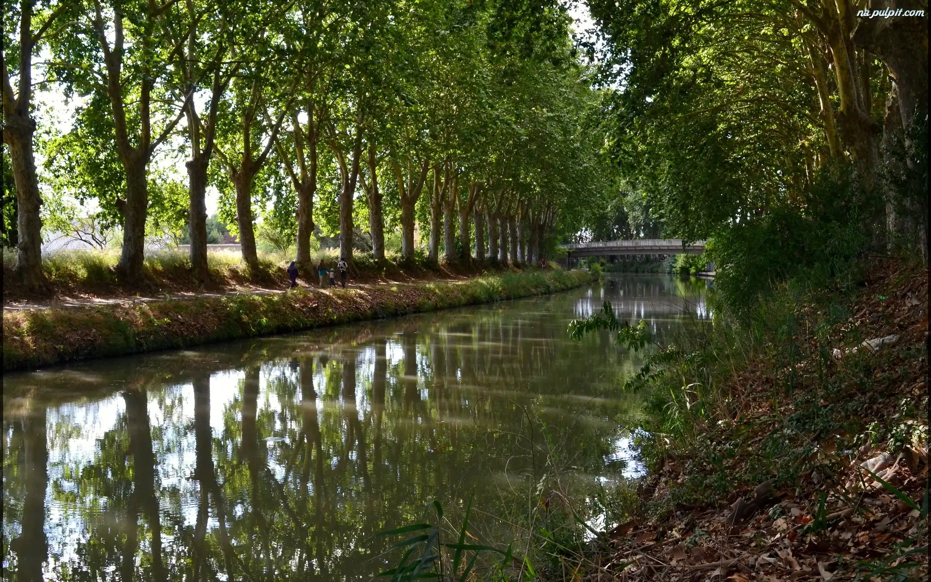 Most, Drzewa, Rzeka, Spacerowicze Na Pulpit