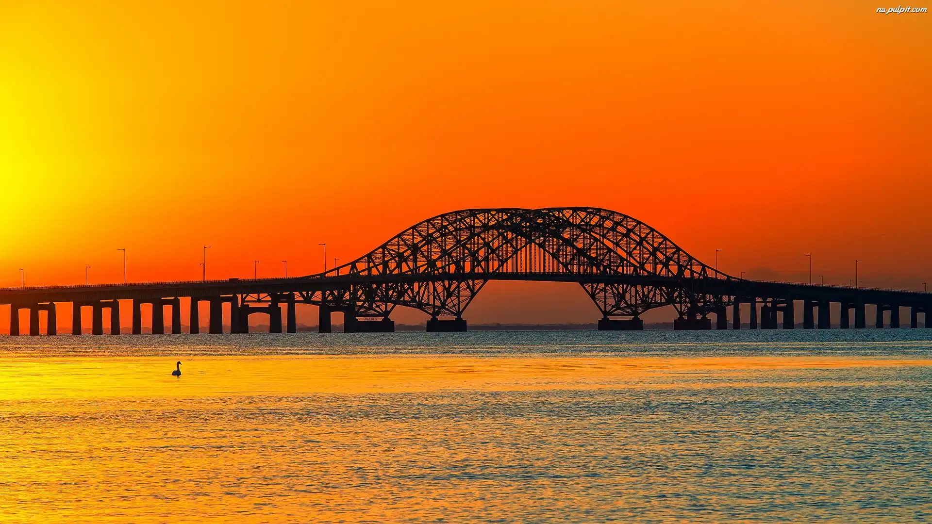 Most, Zachód, Rzeka, Słońca Na Pulpit