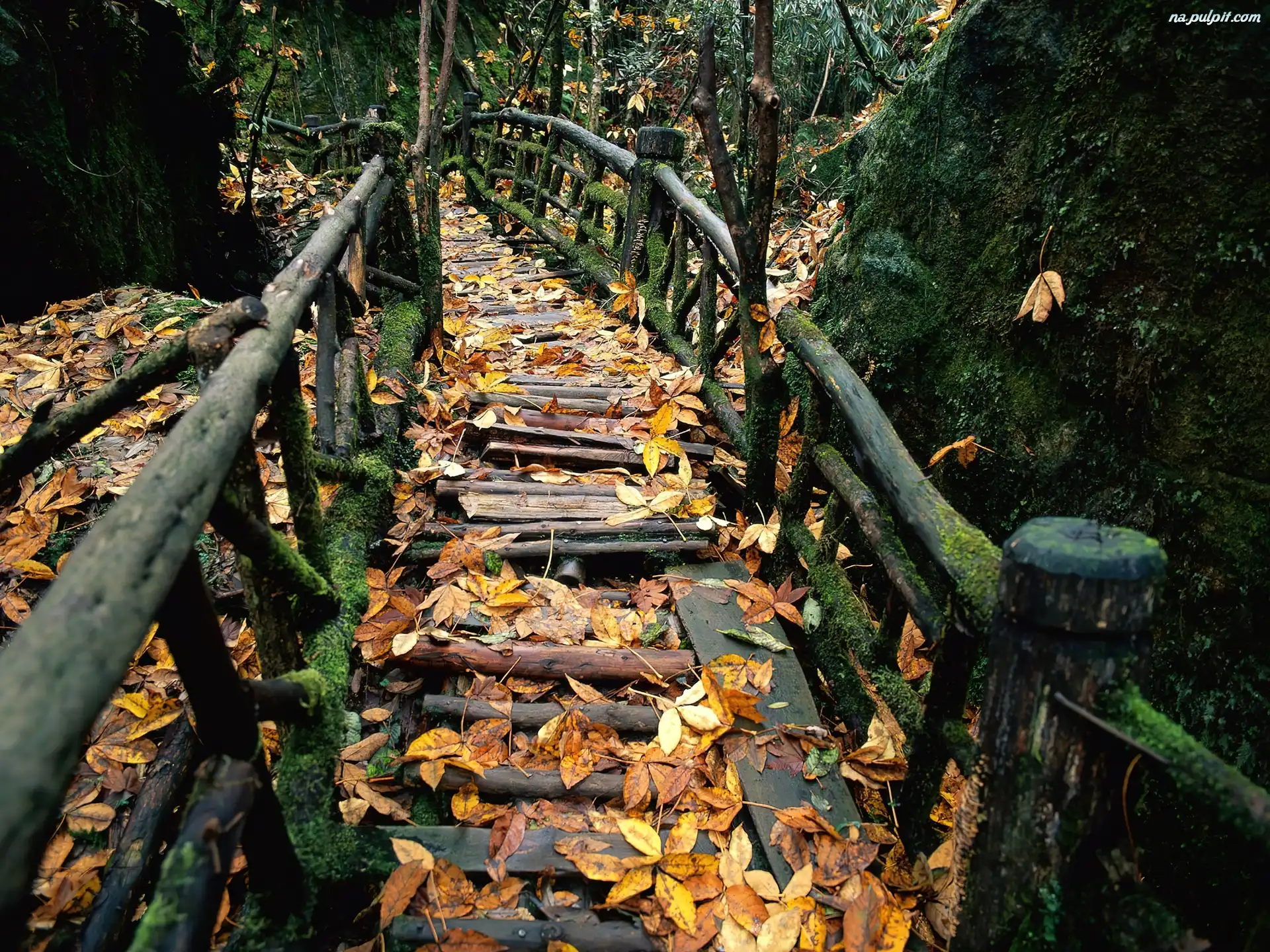 Mostek, Liście, Drzewa, Drewniany Na Pulpit