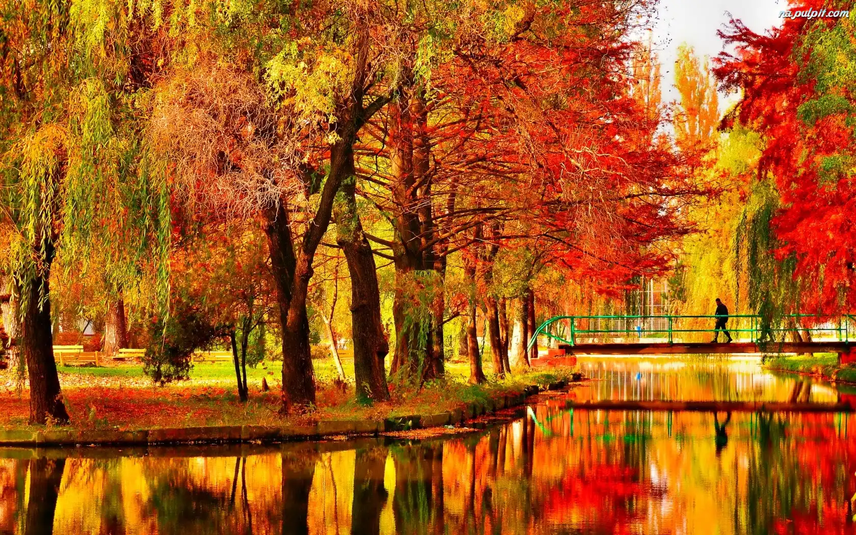 Mostek, Park, Jesień, Staw Na Pulpit