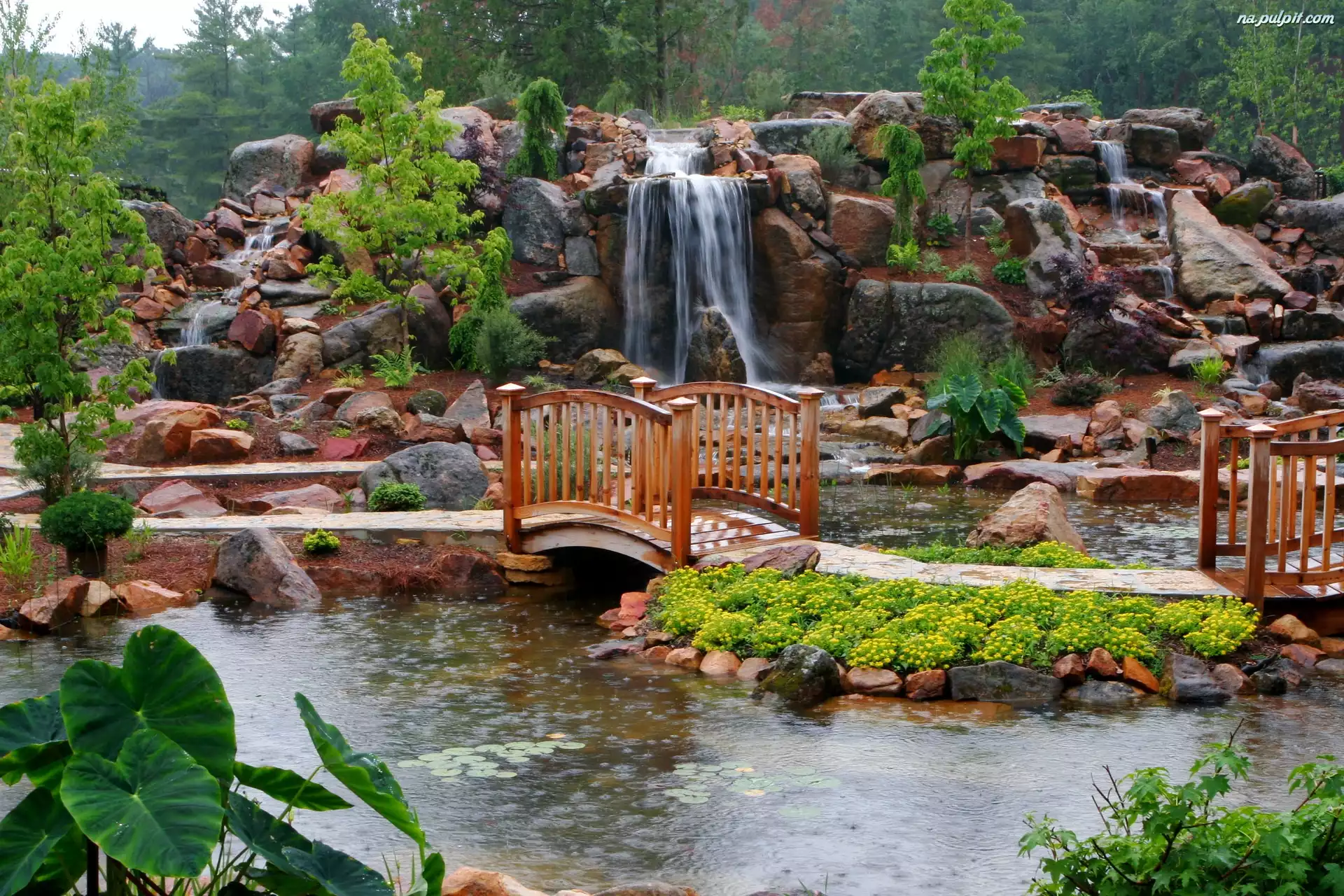 Mostek, Rzeczka, Park, Wodospad Na Pulpit