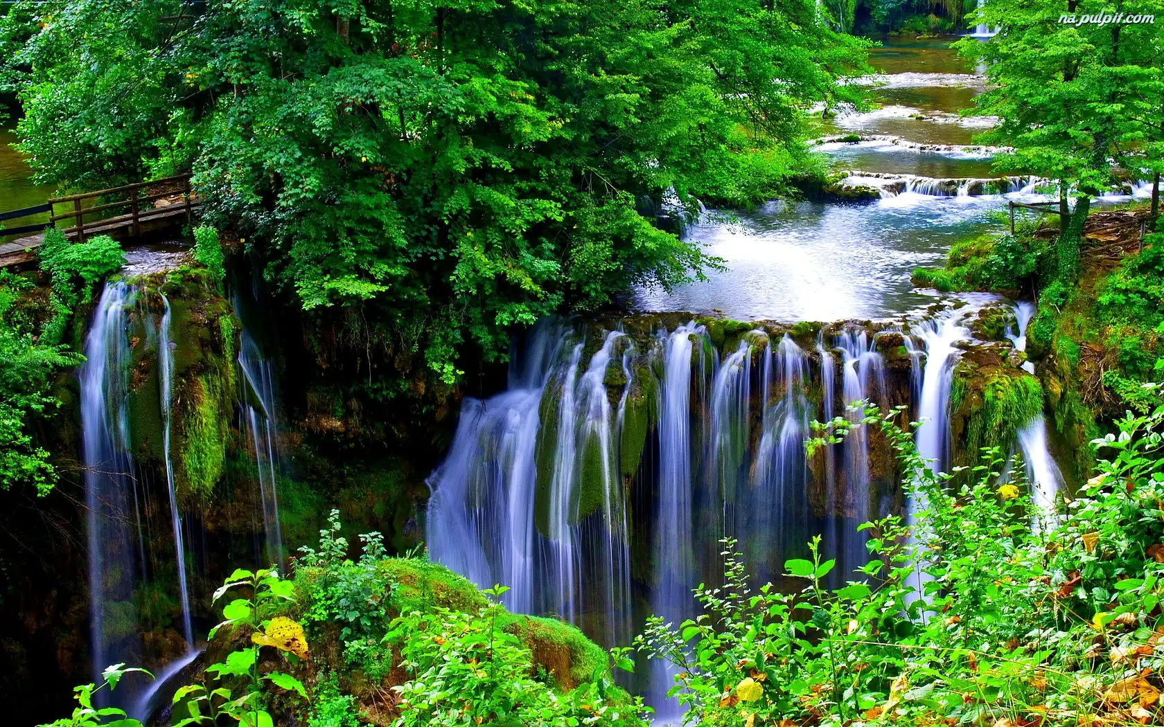Mostek, Wodospad, Piękny, Drzewa Na Pulpit
