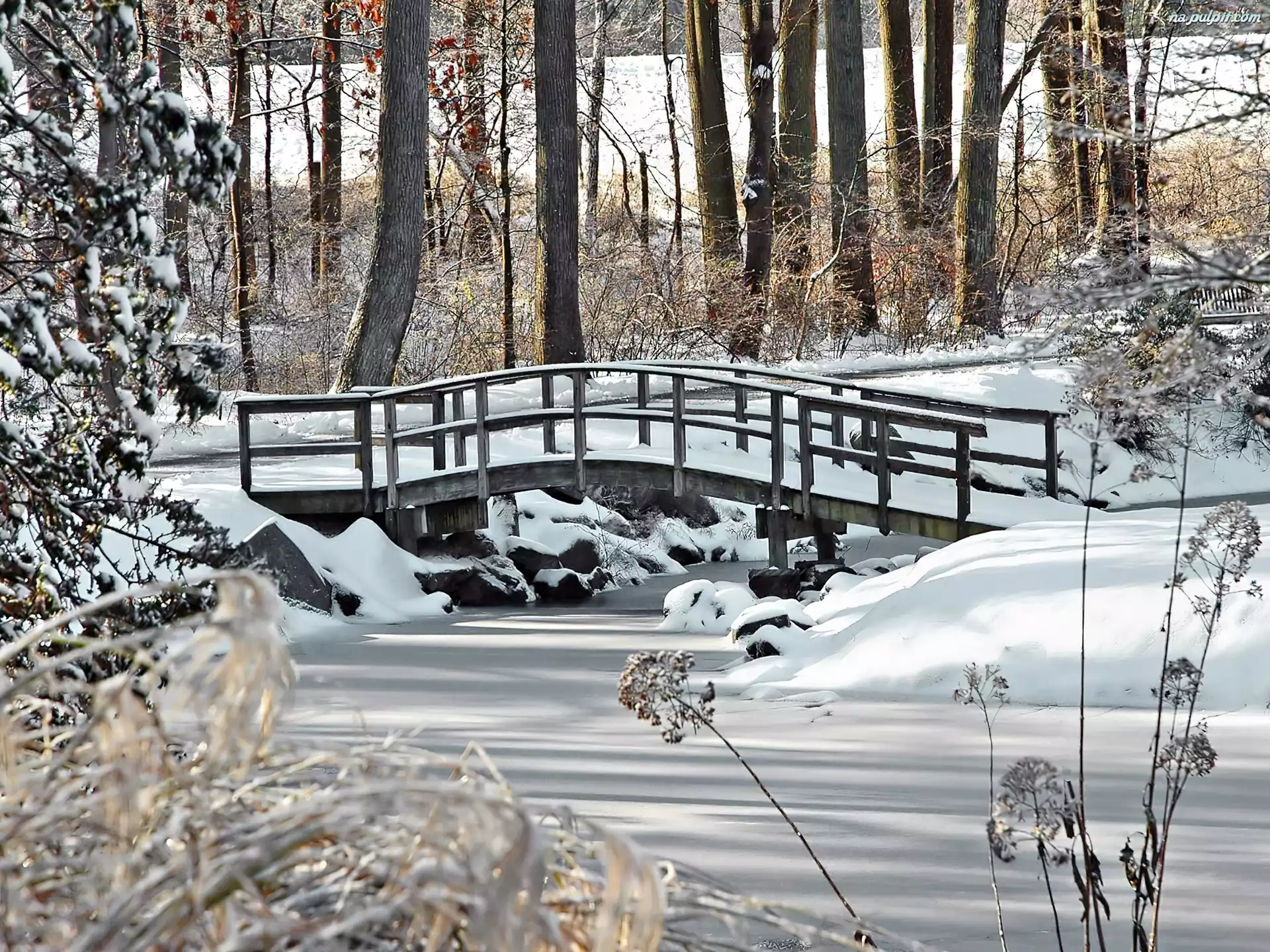 Mostek, Zamarznięta, Zima, Rzeczka Na Pulpit