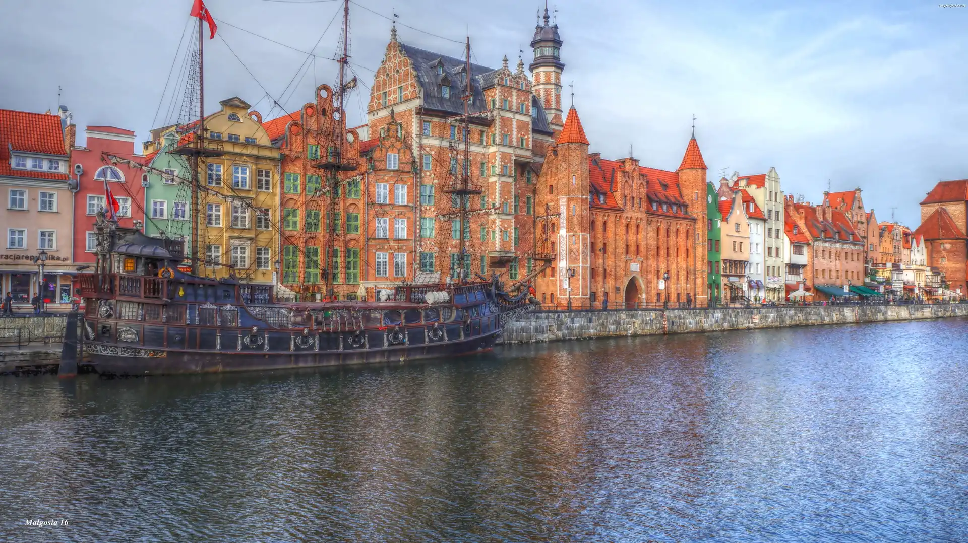 HDR, Motława, Łódź, Kamienice, Rzeka, Gdańsk, Zabytki Na Pulpit