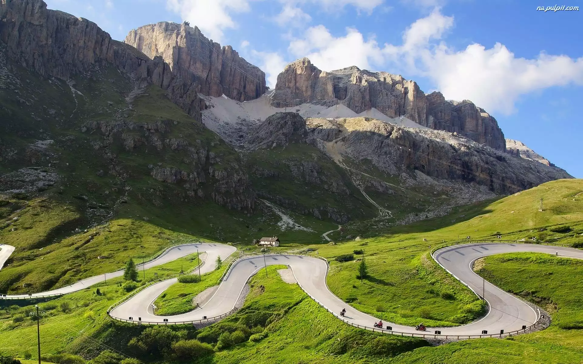 Motocykle, Droga, Dom, Góry, Serpentyny