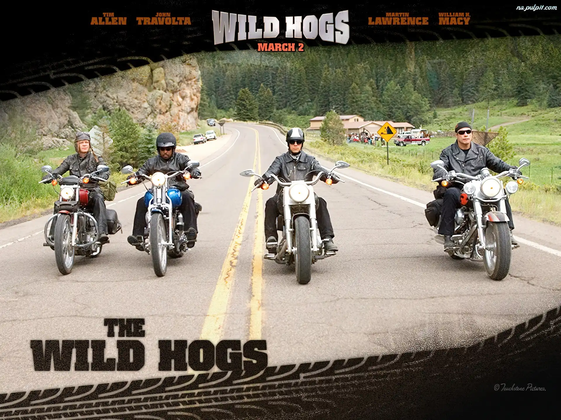Wild Hogs, William H. Macy, motocykliści motocykliści, Wild Hogs, ulica Martin Lawrence, Tim Allen, John Travolta, Wild Hogs, William H. Macy Wild Hogs, gang, ulica, harleye Wild Hogs, Tim Allen Martin Lawrence, Wild Hogs