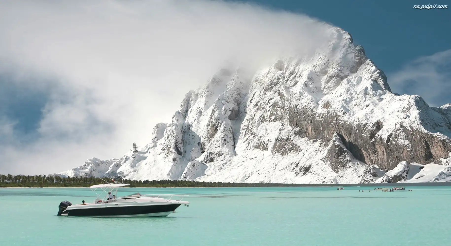 Motorówka, Śnieg, Góry, Morze Na Pulpit